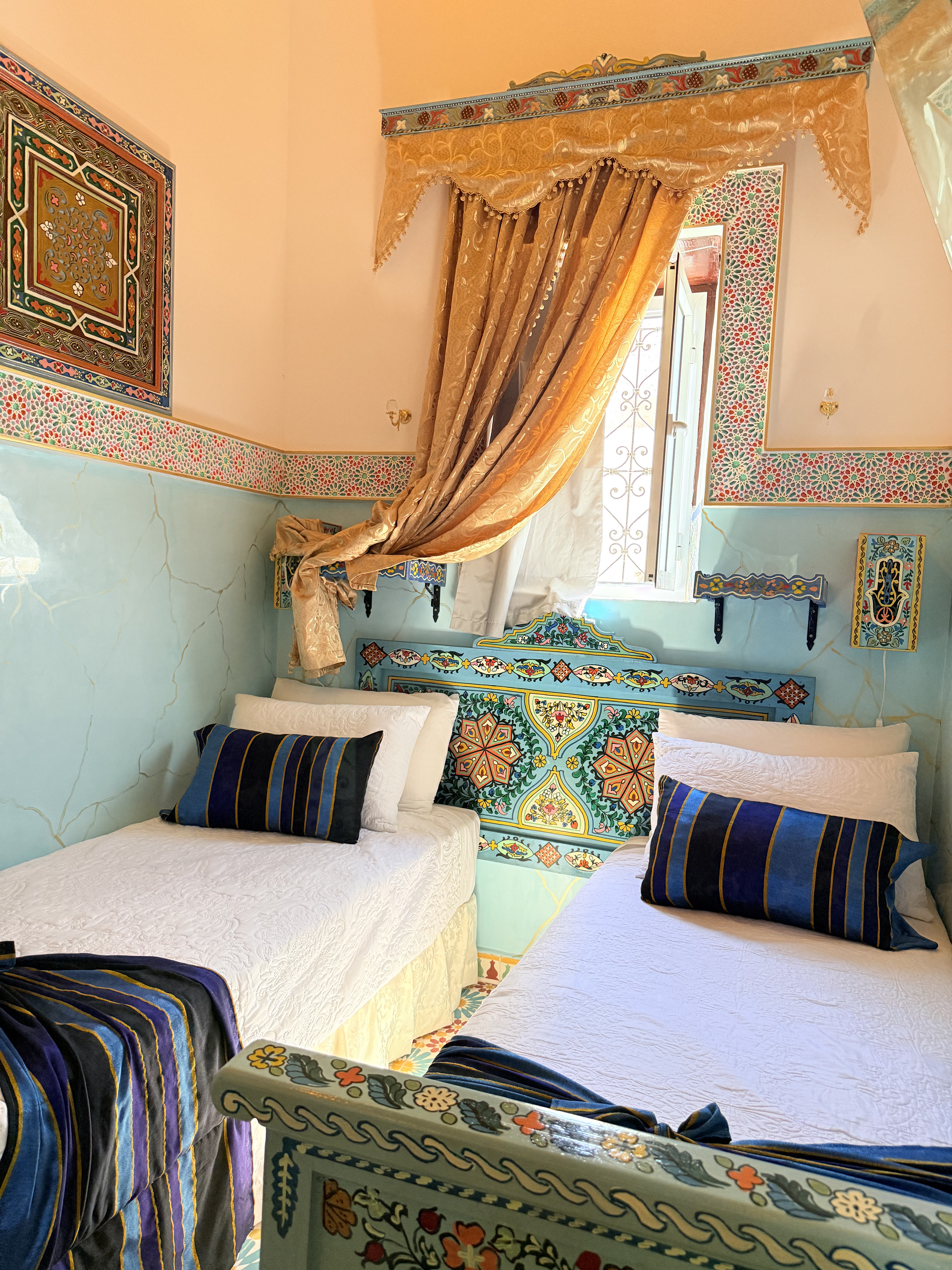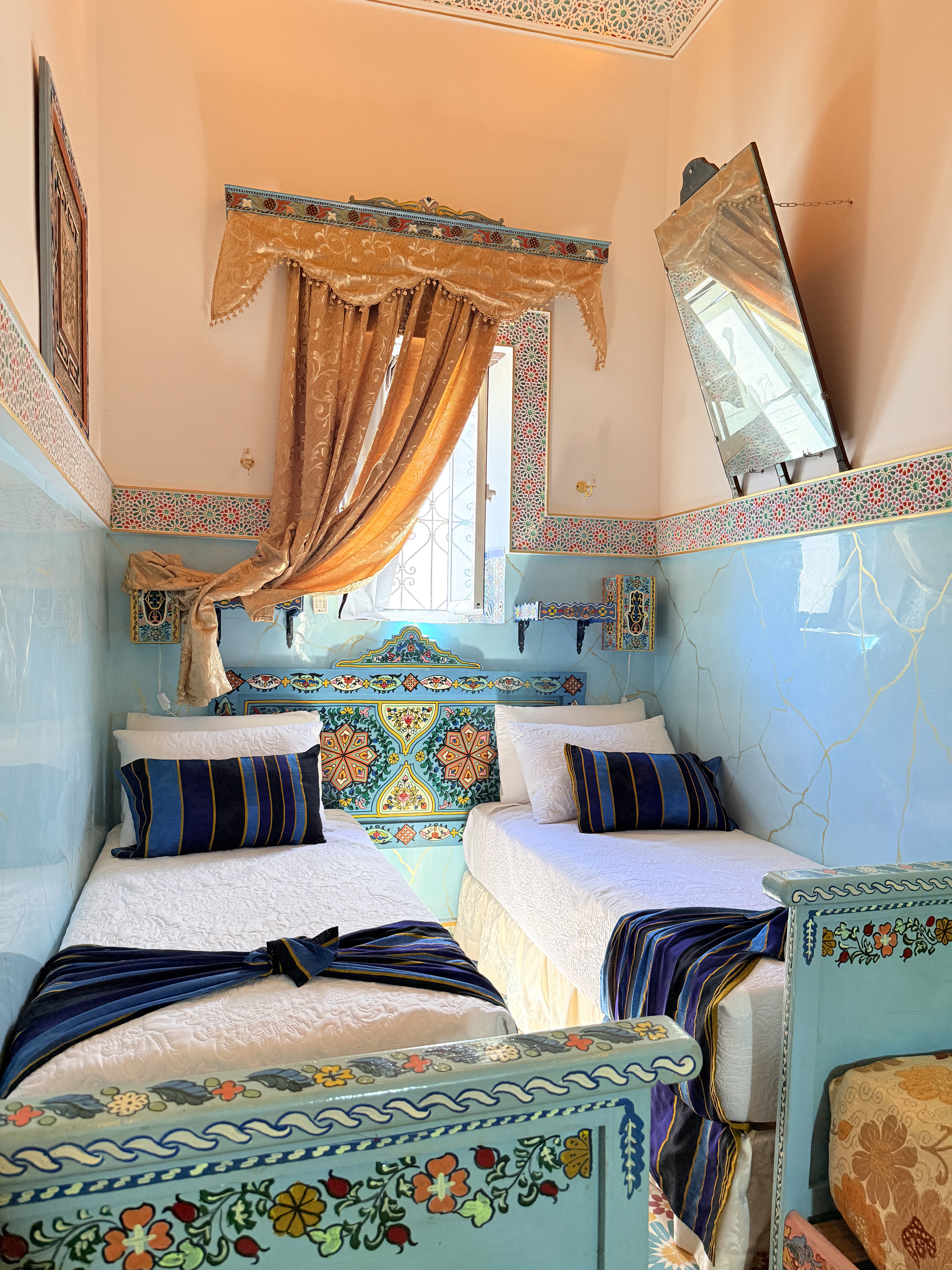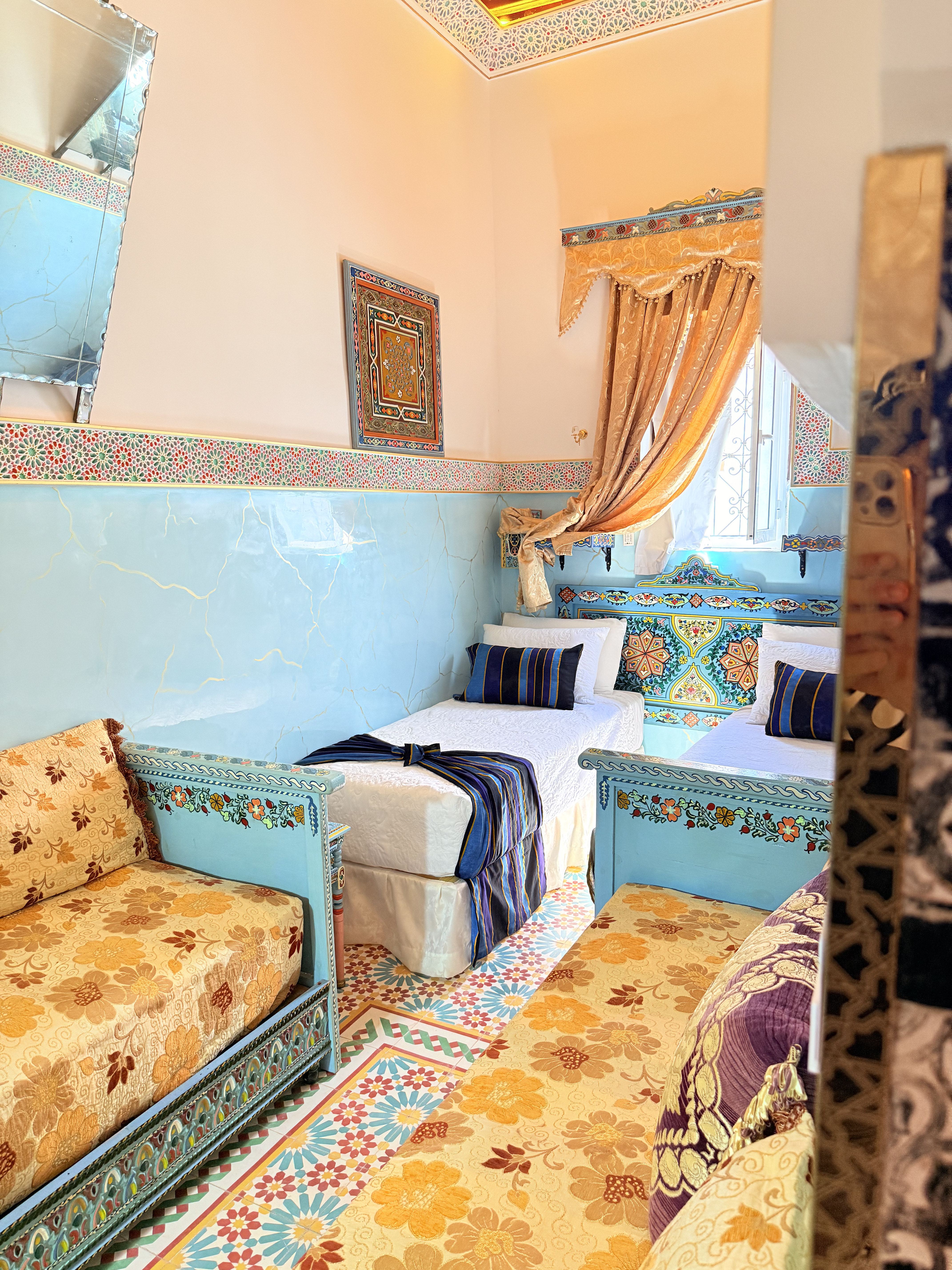 Un Escape Junto al Mar Adéntrate en el mundo encantador de MALIKA MALAK en Riad Las Mil y Una Noches. esta habitación ofrece una cautivadora combinación de encanto marroquí e inspiración tradicional, brindando un escape delicioso en el corazón de tetouan.