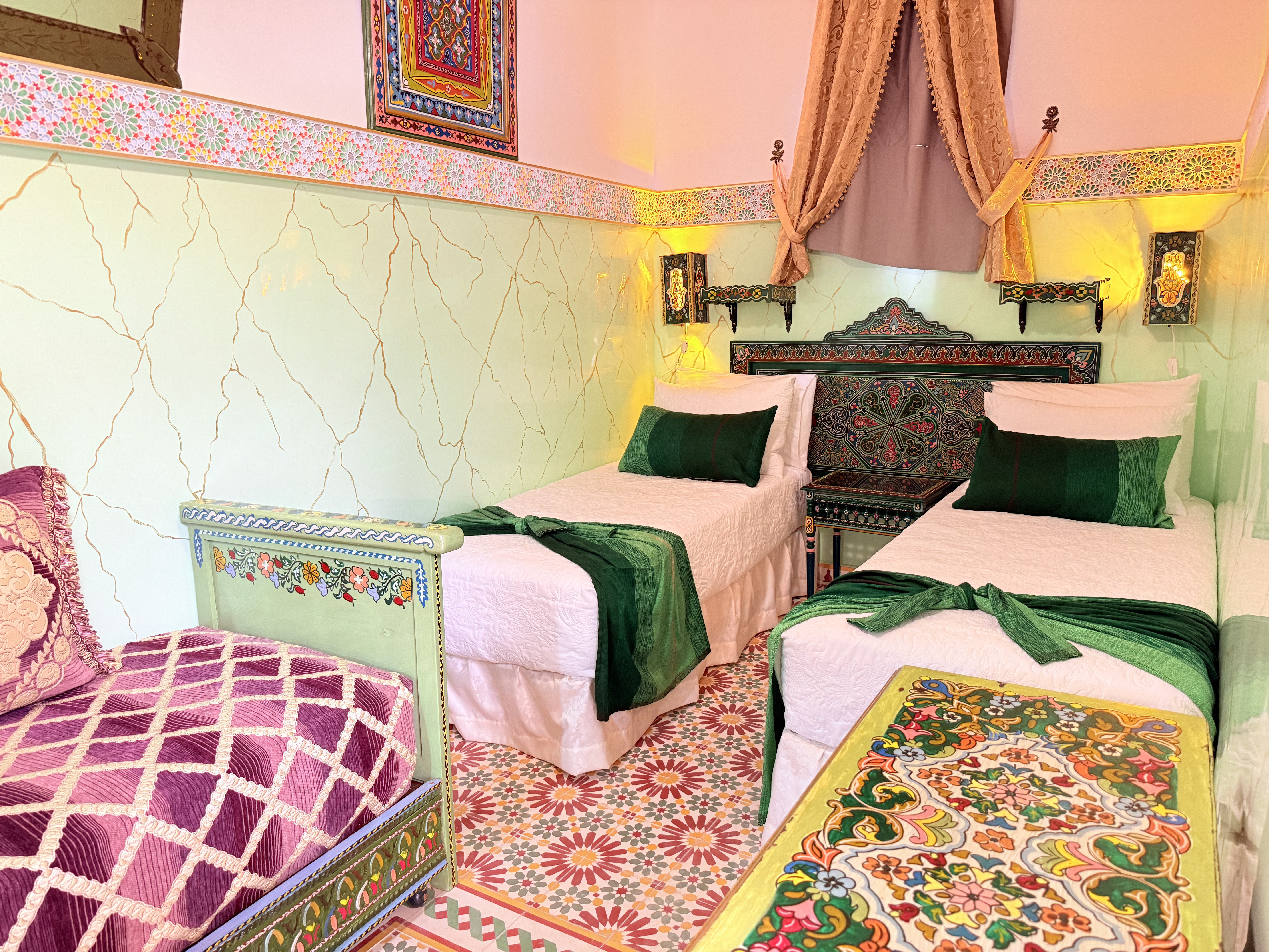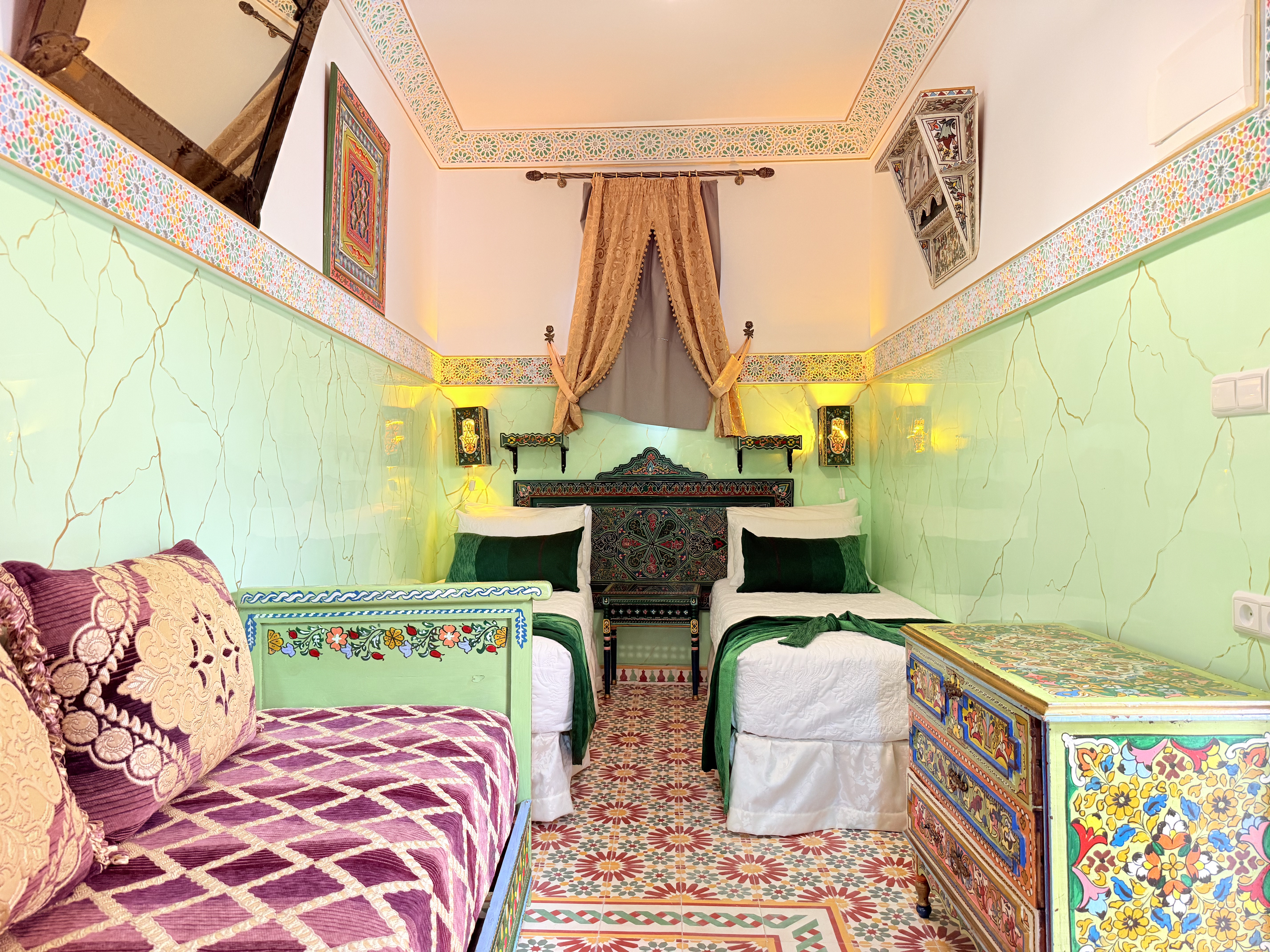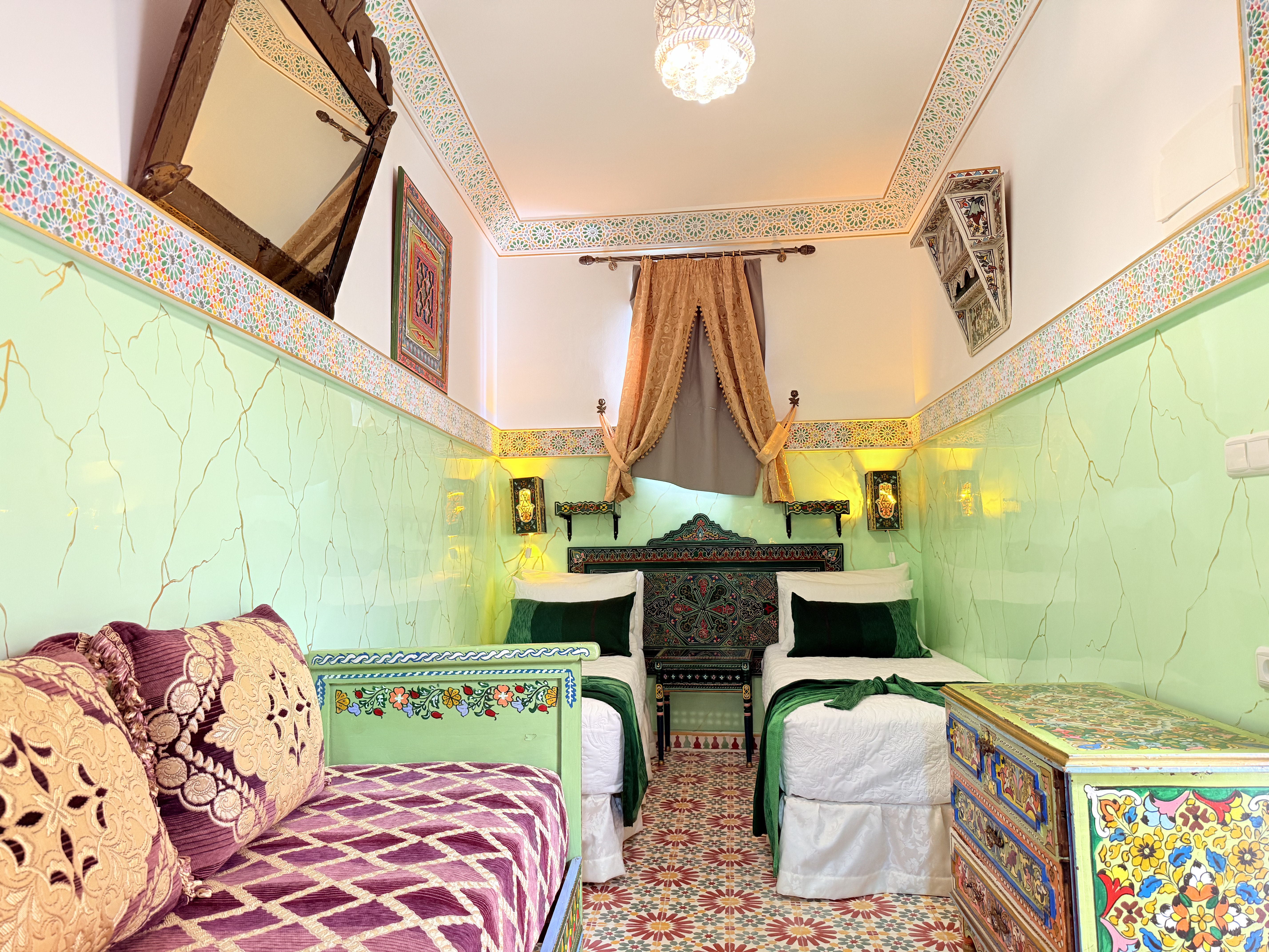 Un Oasis de Encanto Sumérgete en la magia de Las Mil y Una Noches con la habitación Prince Amir en Riad Las Mil Y Una Noches. Nombrada en honor al famoso personaje de los cuentos árabes, esta habitación te transportará a un mundo de encanto y misterio en el corazón de Tetouan.