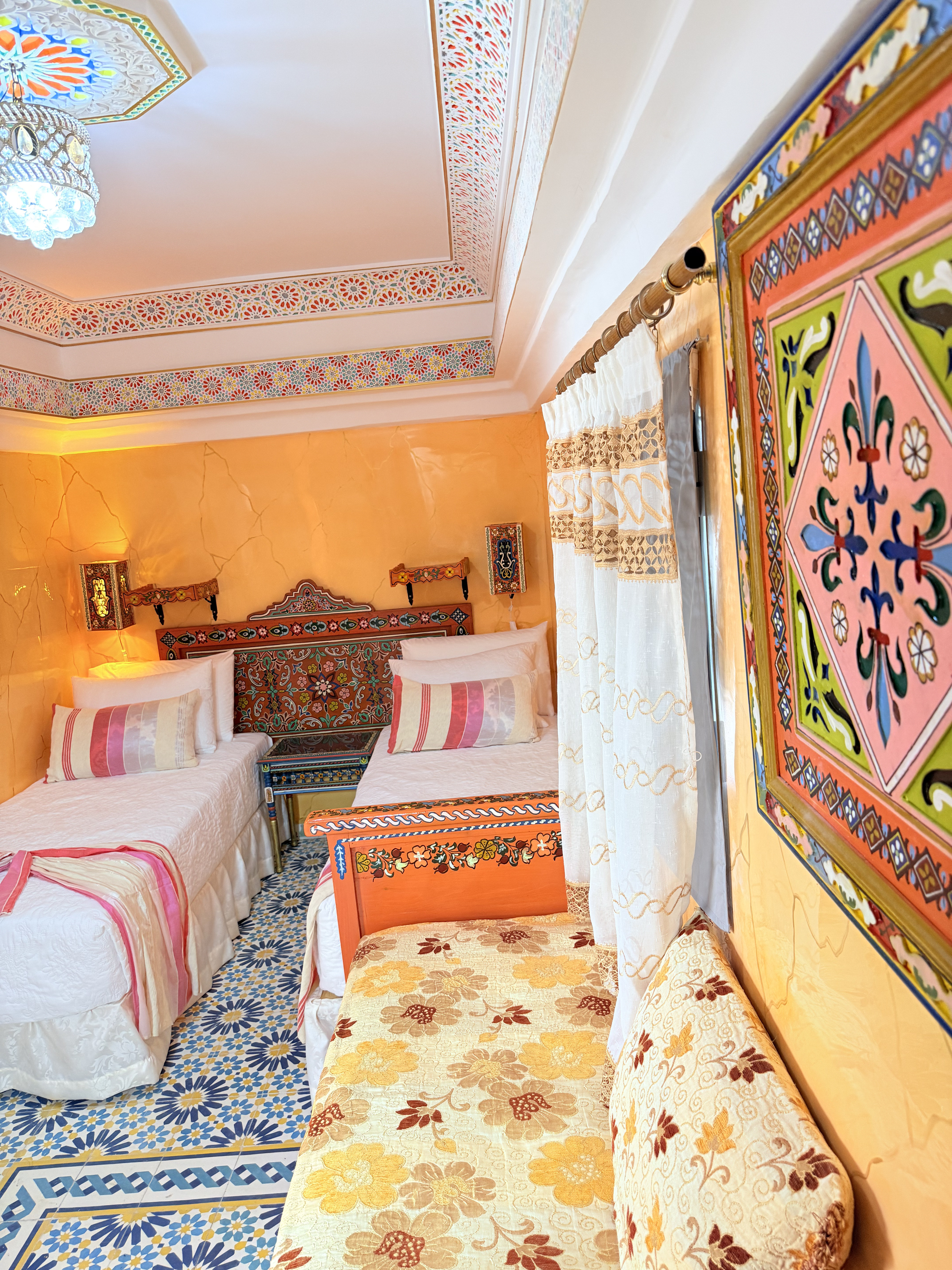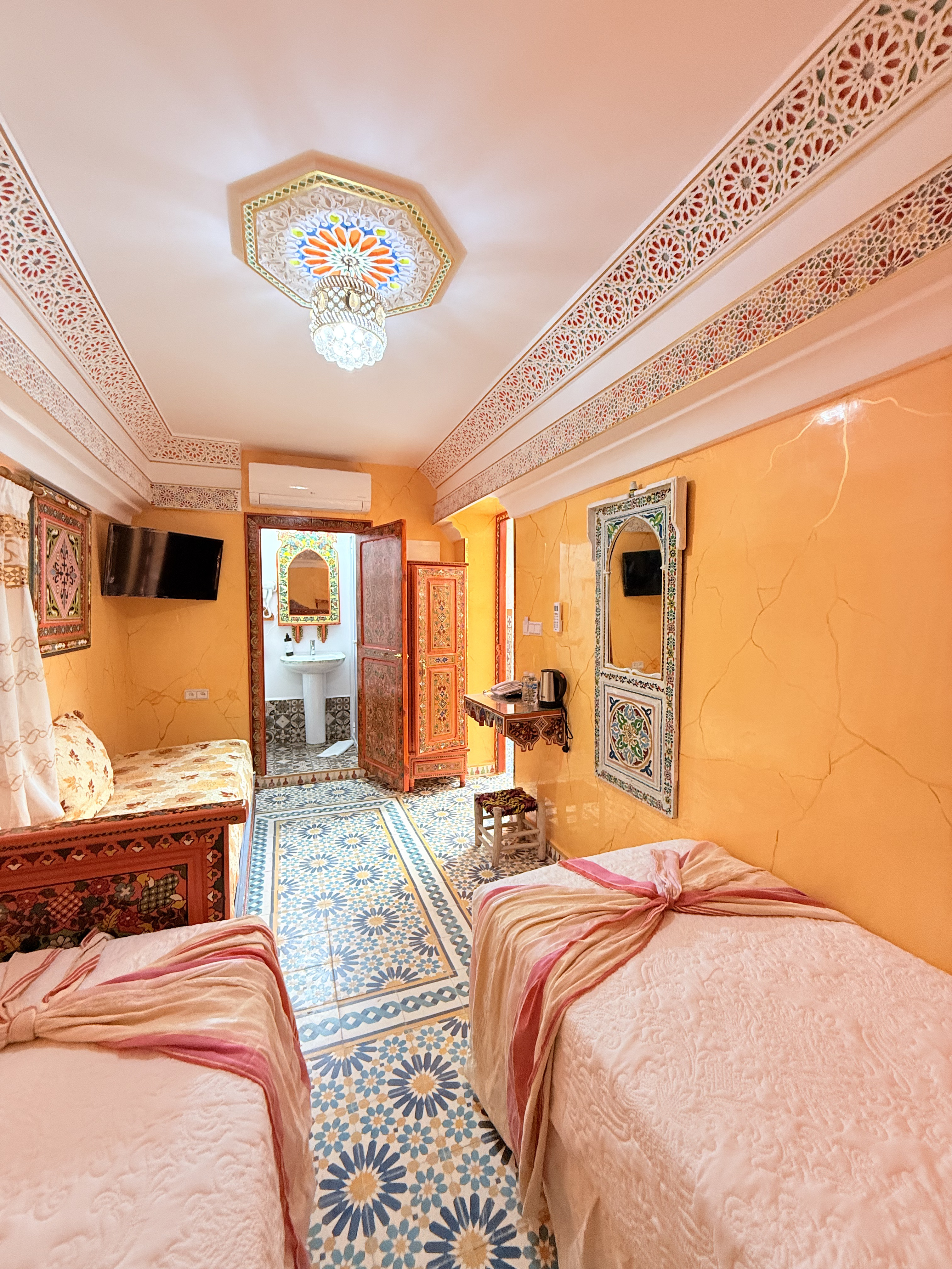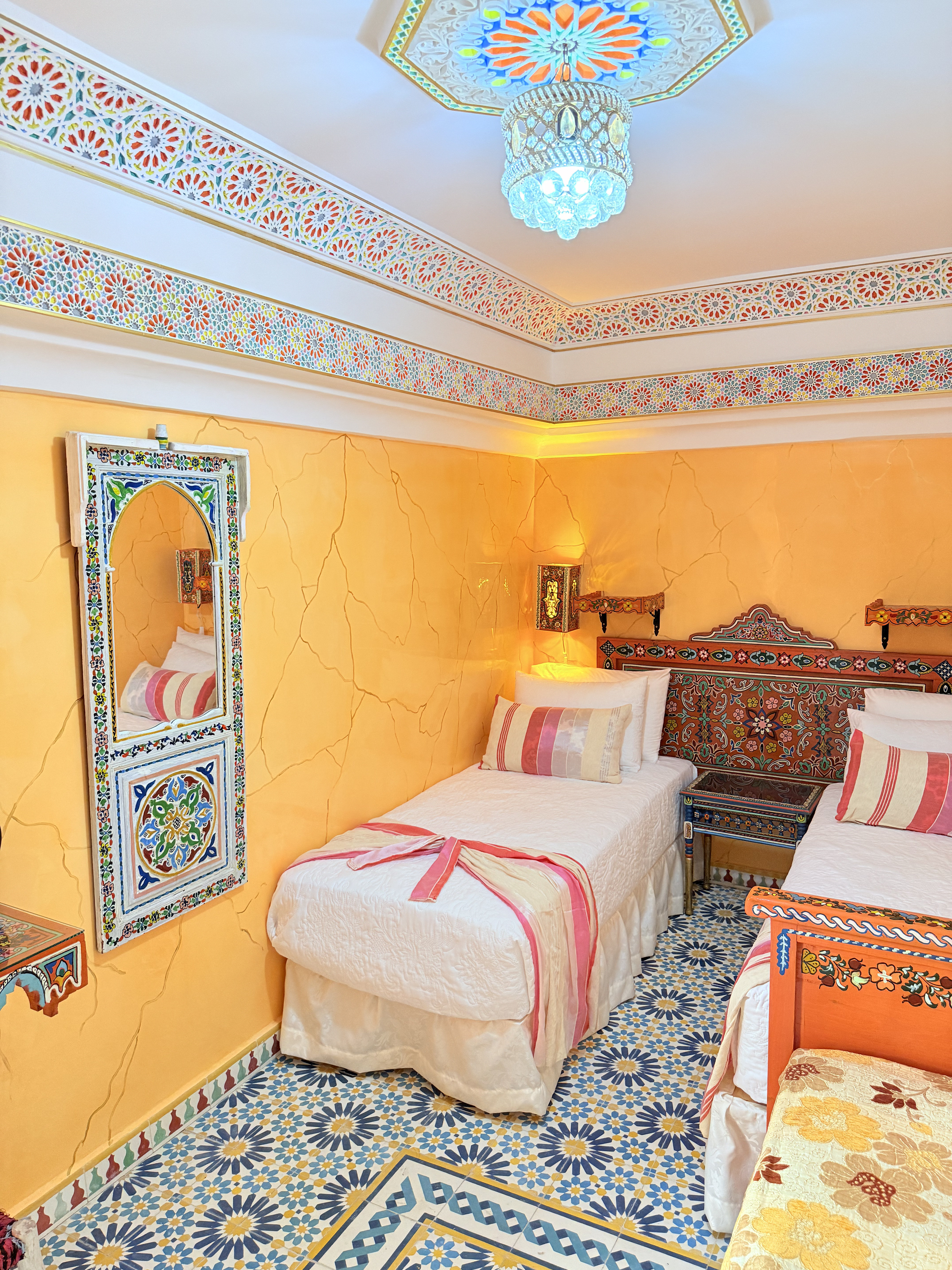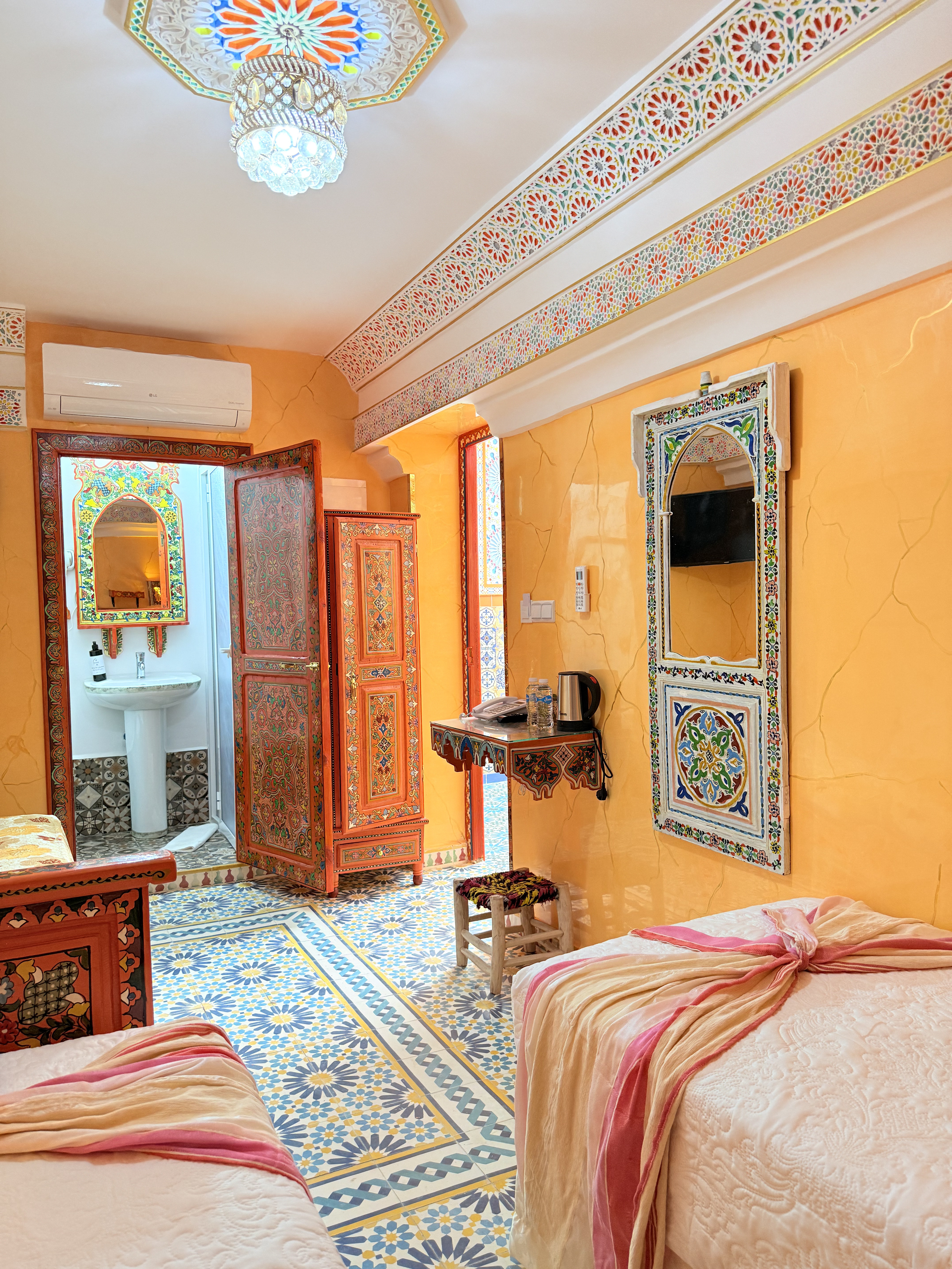 Un Refugio de Tesoros Descubre un mundo de maravillas en la habitación Sultana mariam en Riad Las Mil y Una Noches. Inspirada en el famoso cuento árabe, esta habitación te sumerge en la magia y el encanto de Las Mil y Una Noches en el corazón de Tetouan.