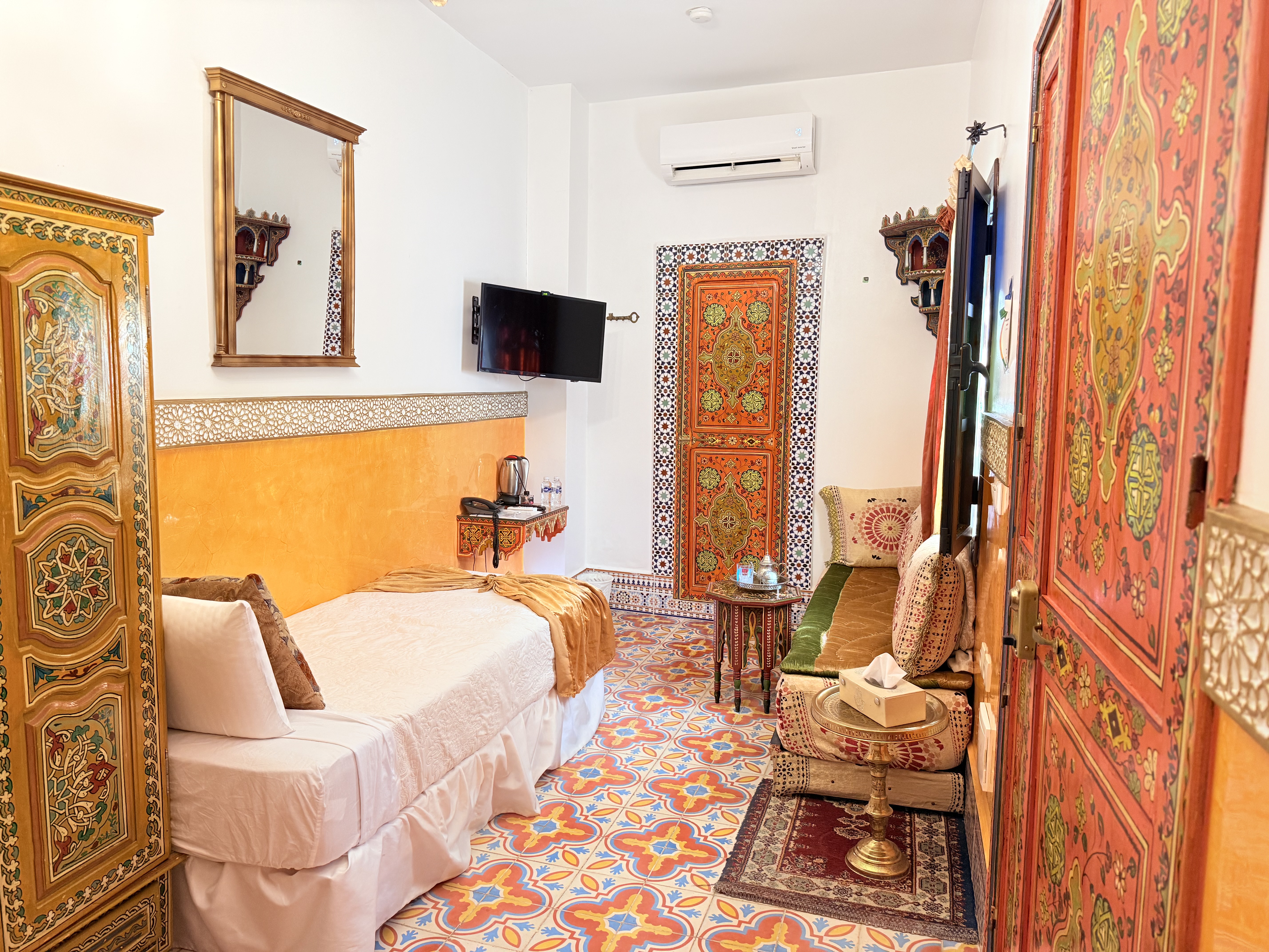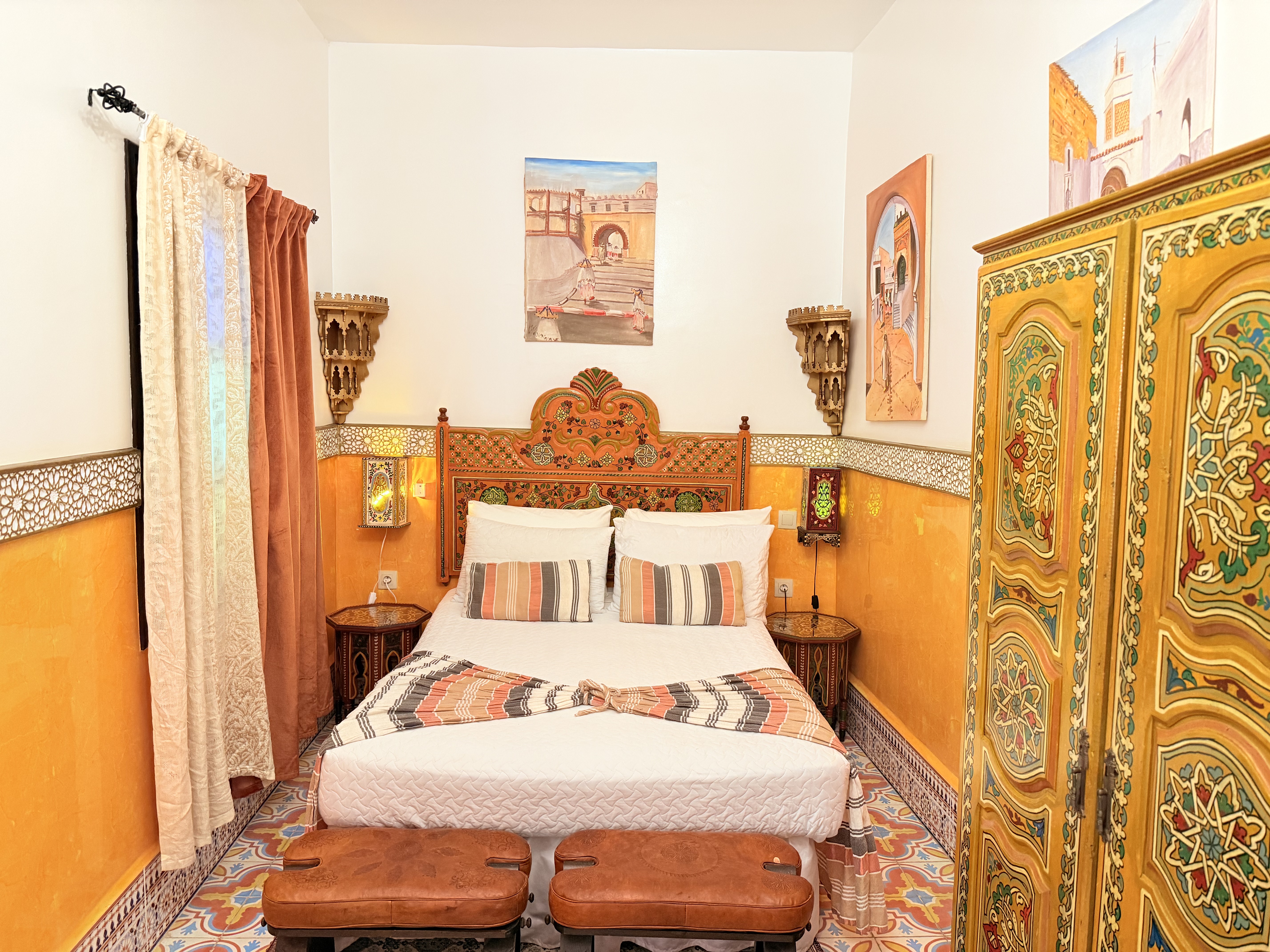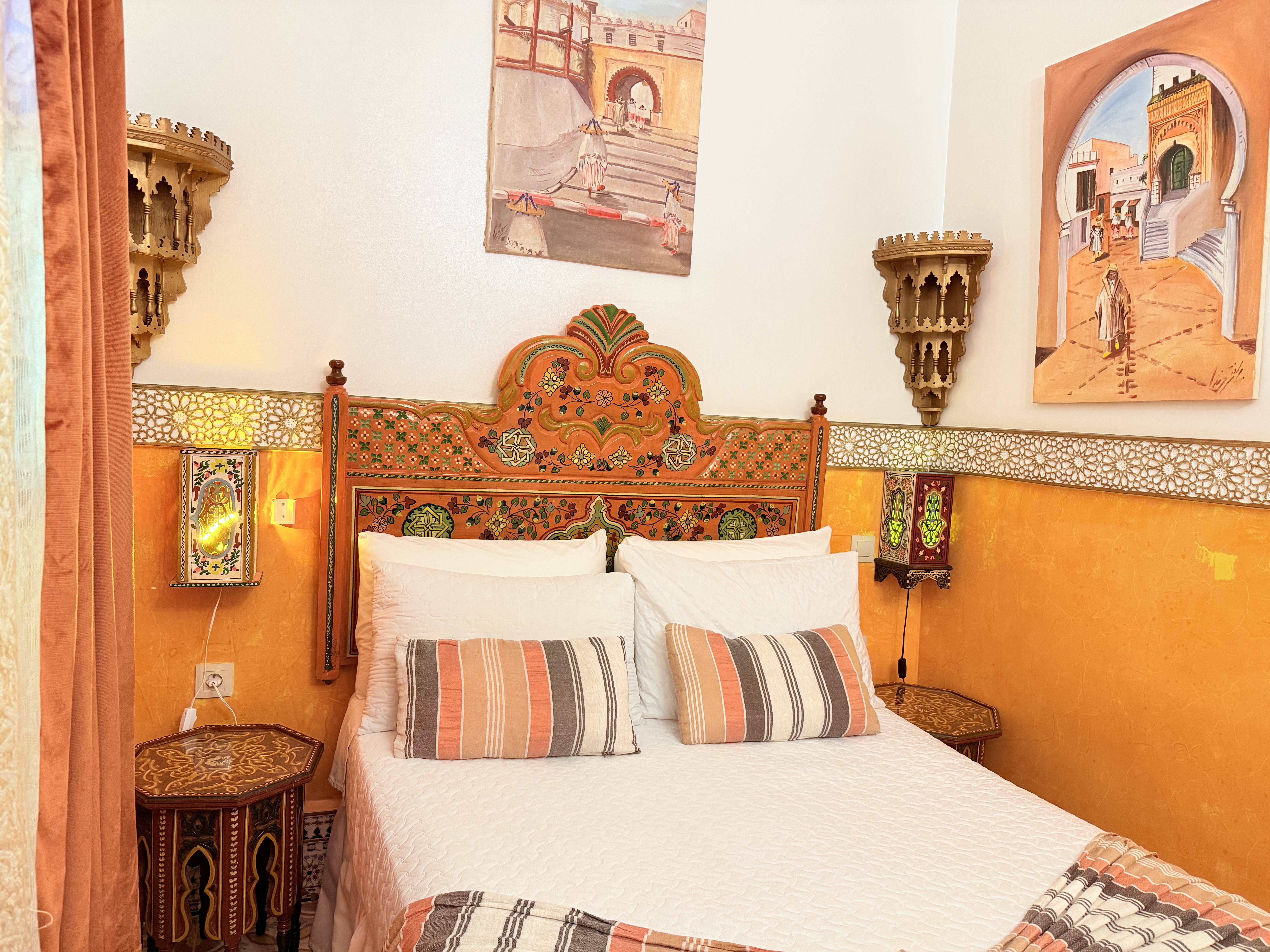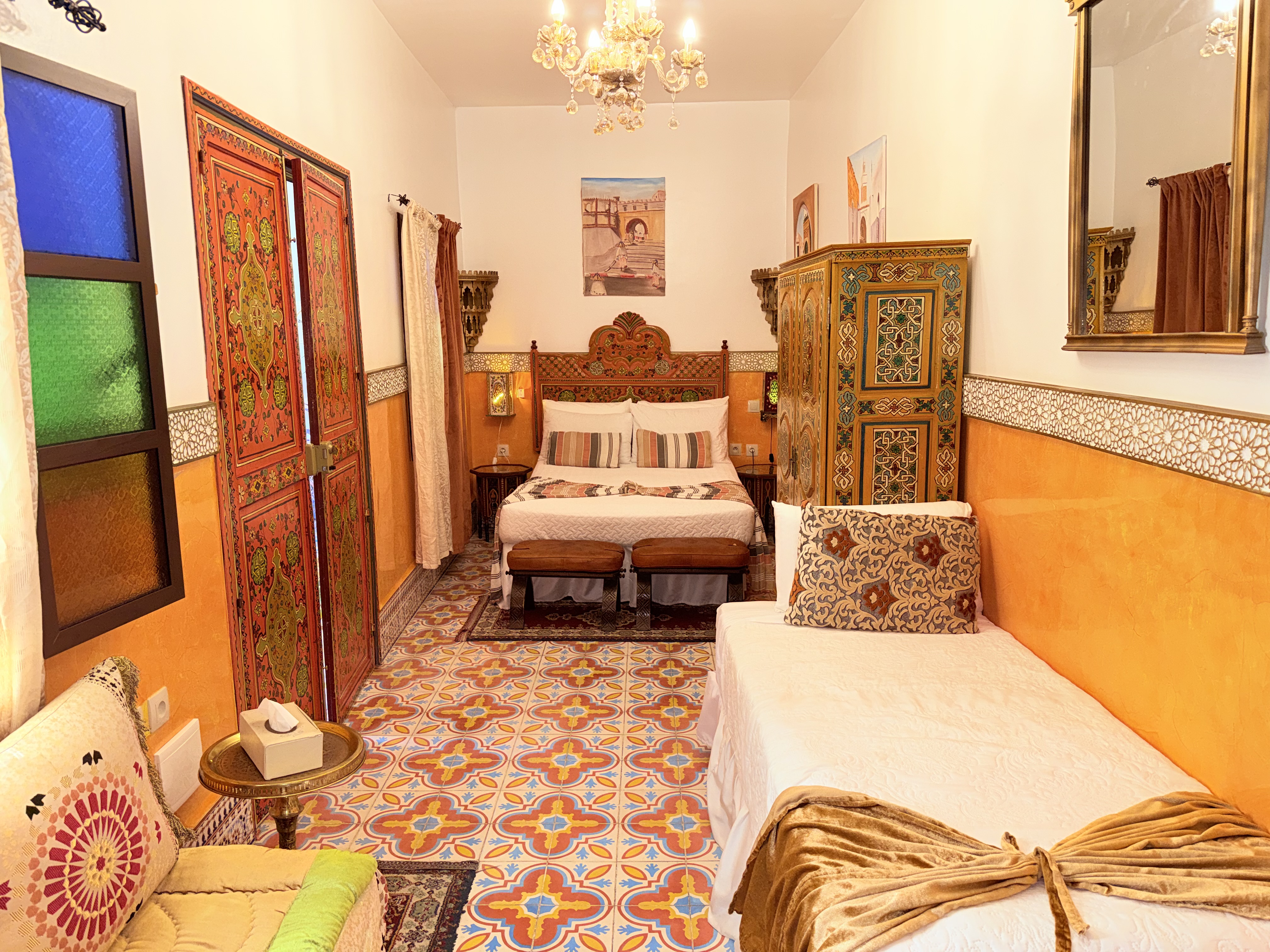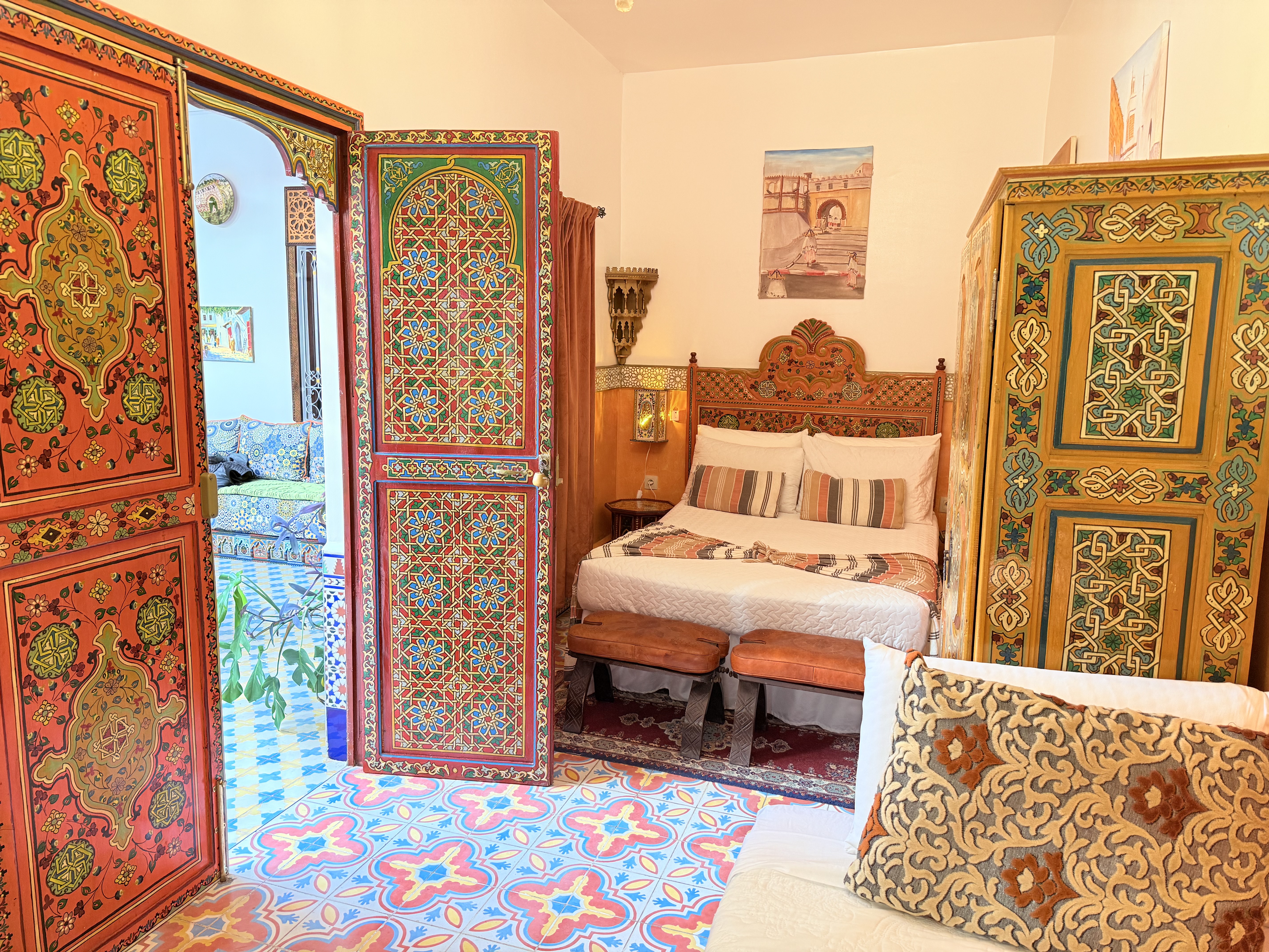 Sumérgete en la historia y la elegancia de Oriente en la habitación Harun al-Rachid en Riad Las Mil y Una Noches. Nombrada en honor al famoso califa de Bagdad, esta habitación te transporta a un mundo de lujo y sofisticación en el corazón de Tetouan.