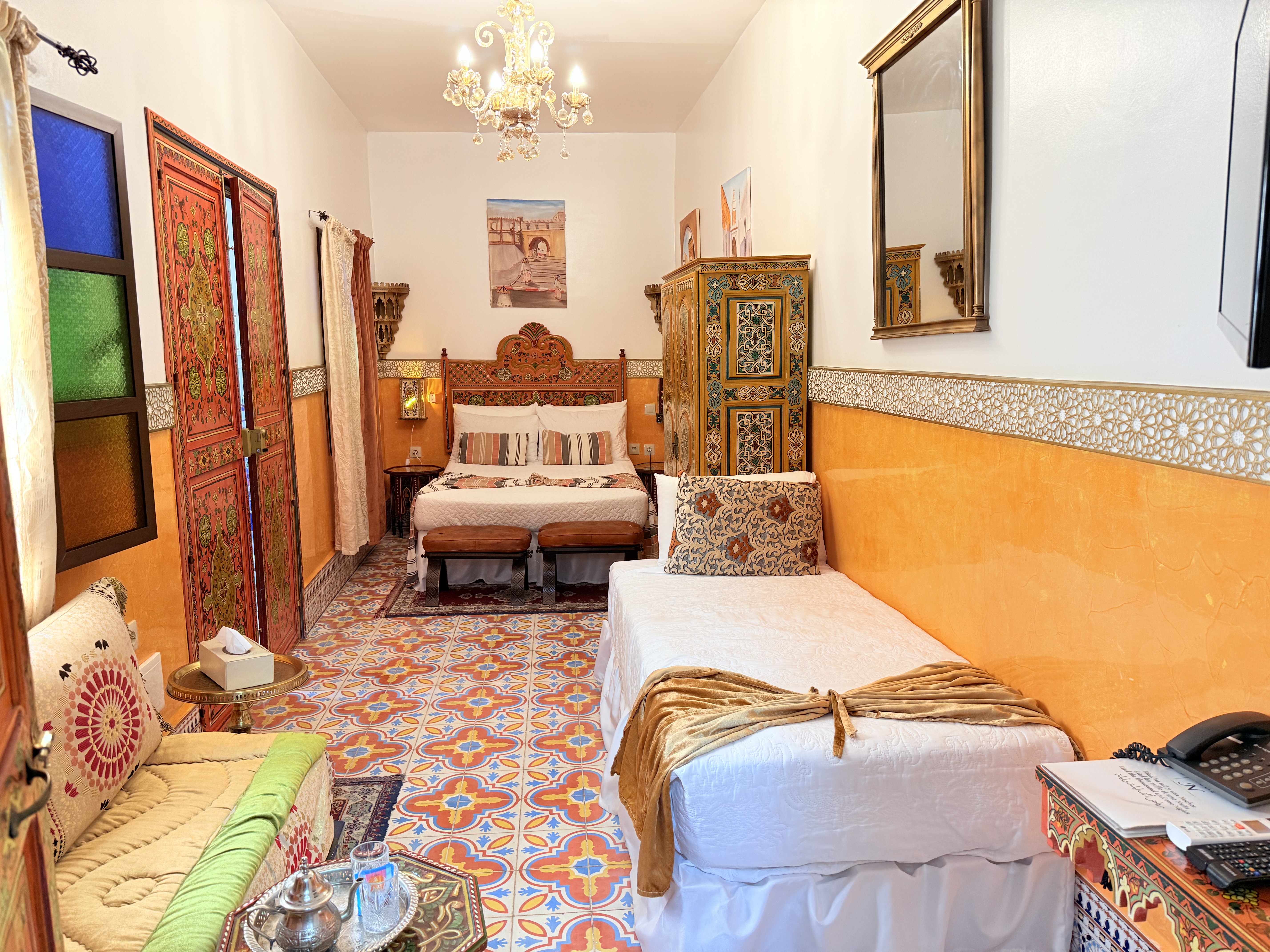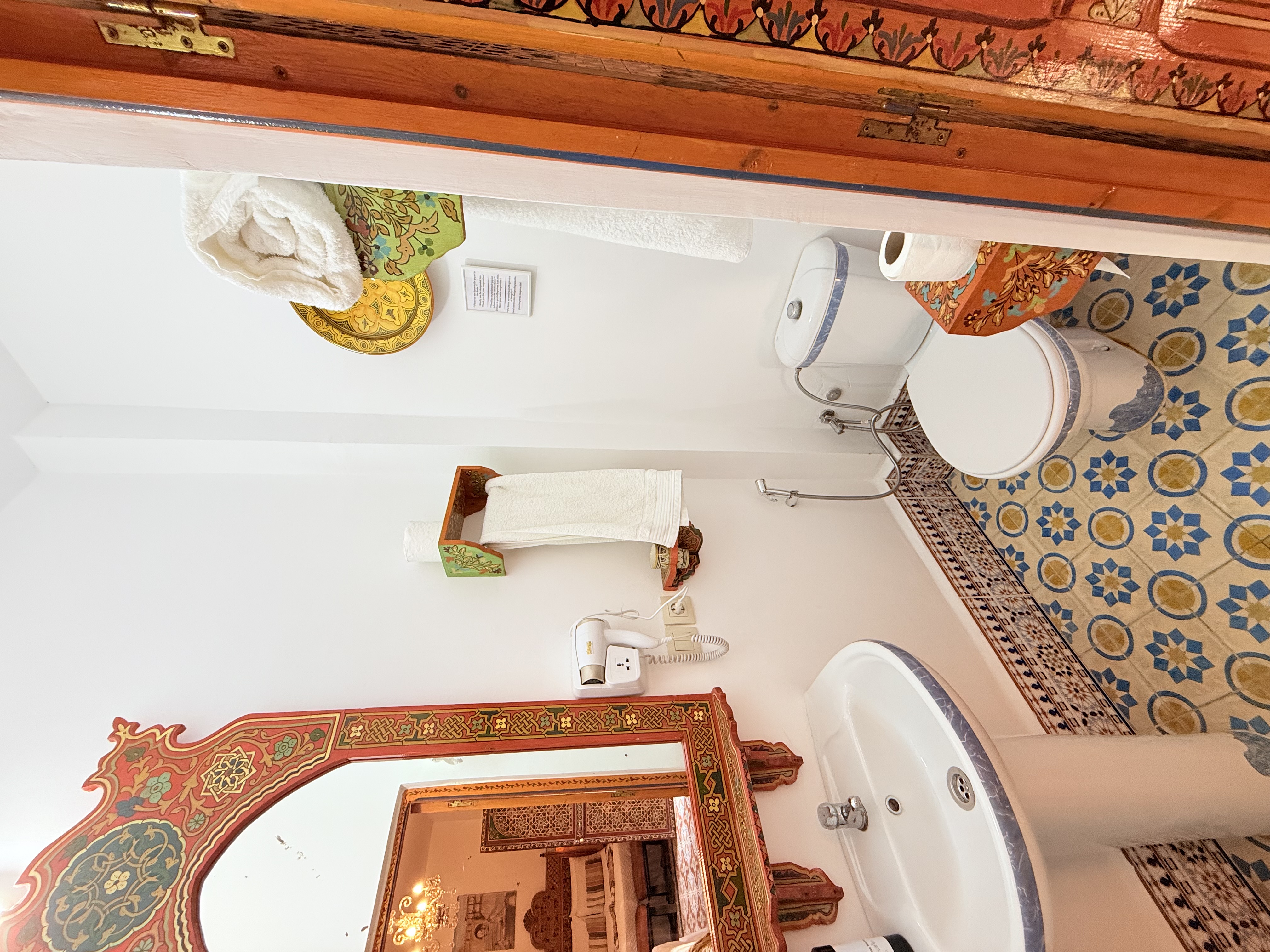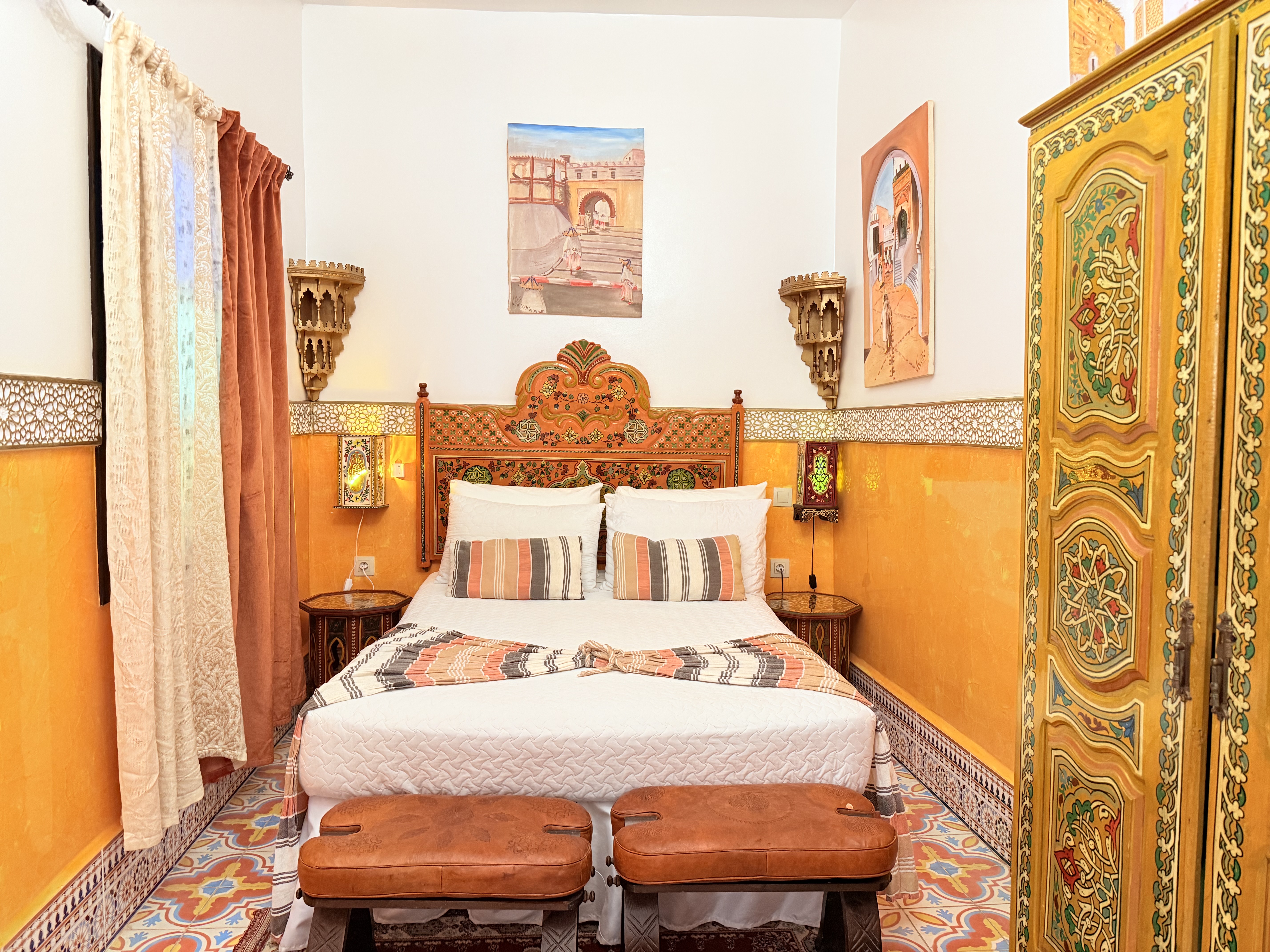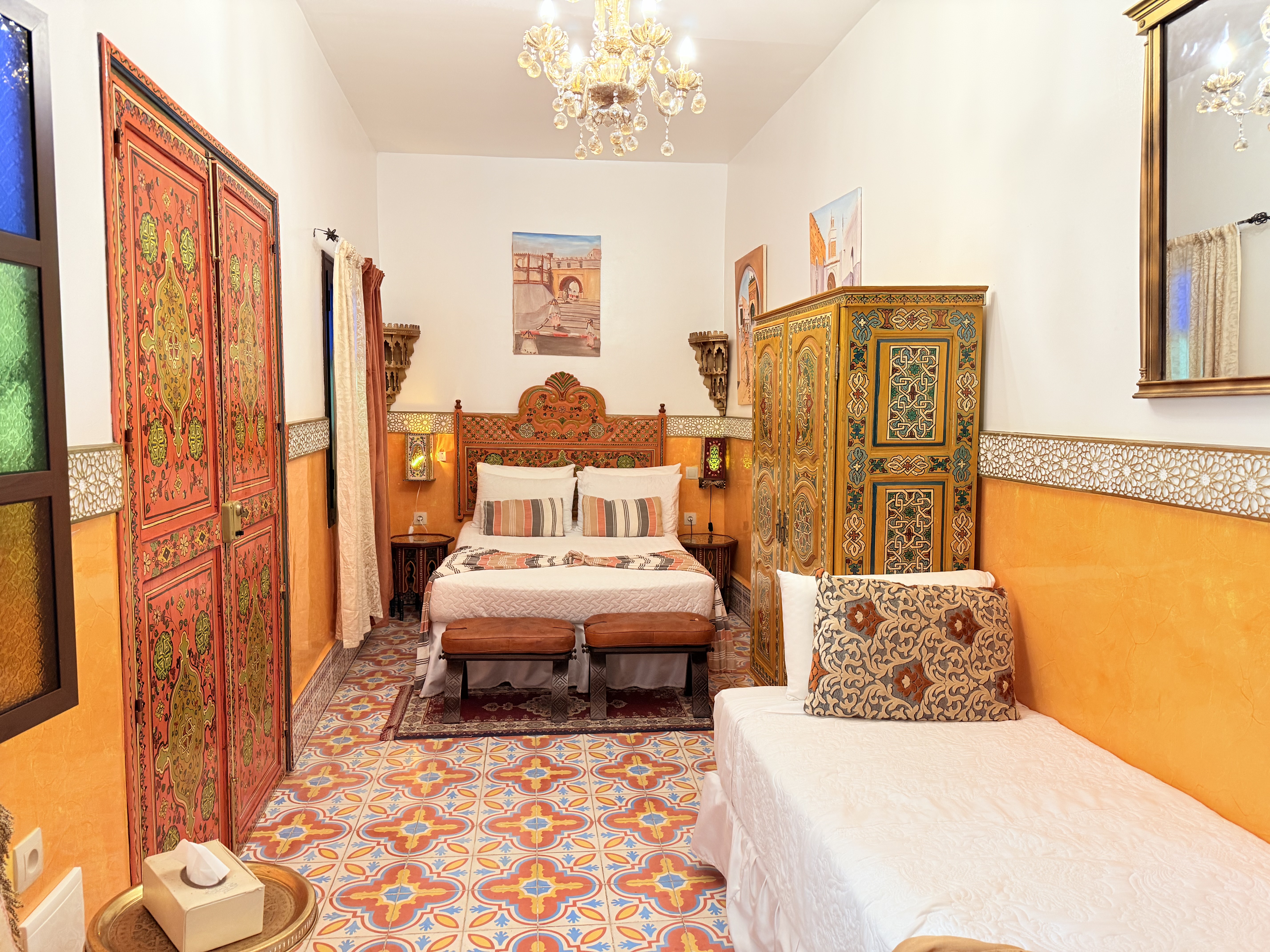 Sumérgete en la historia y la elegancia de Oriente en la habitación Harun al-Rachid en Riad Las Mil y Una Noches. Nombrada en honor al famoso califa de Bagdad, esta habitación te transporta a un mundo de lujo y sofisticación en el corazón de Tetouan.