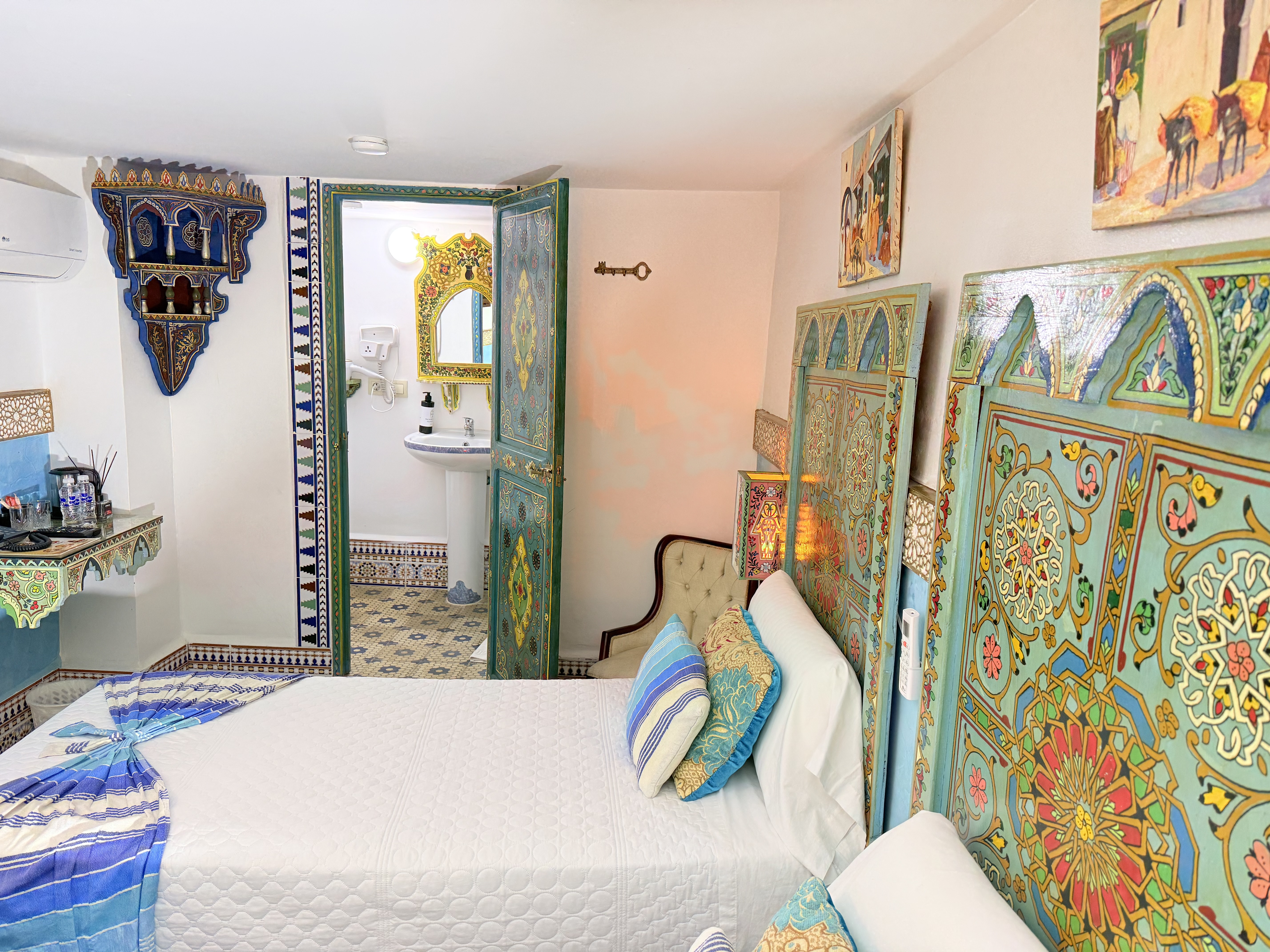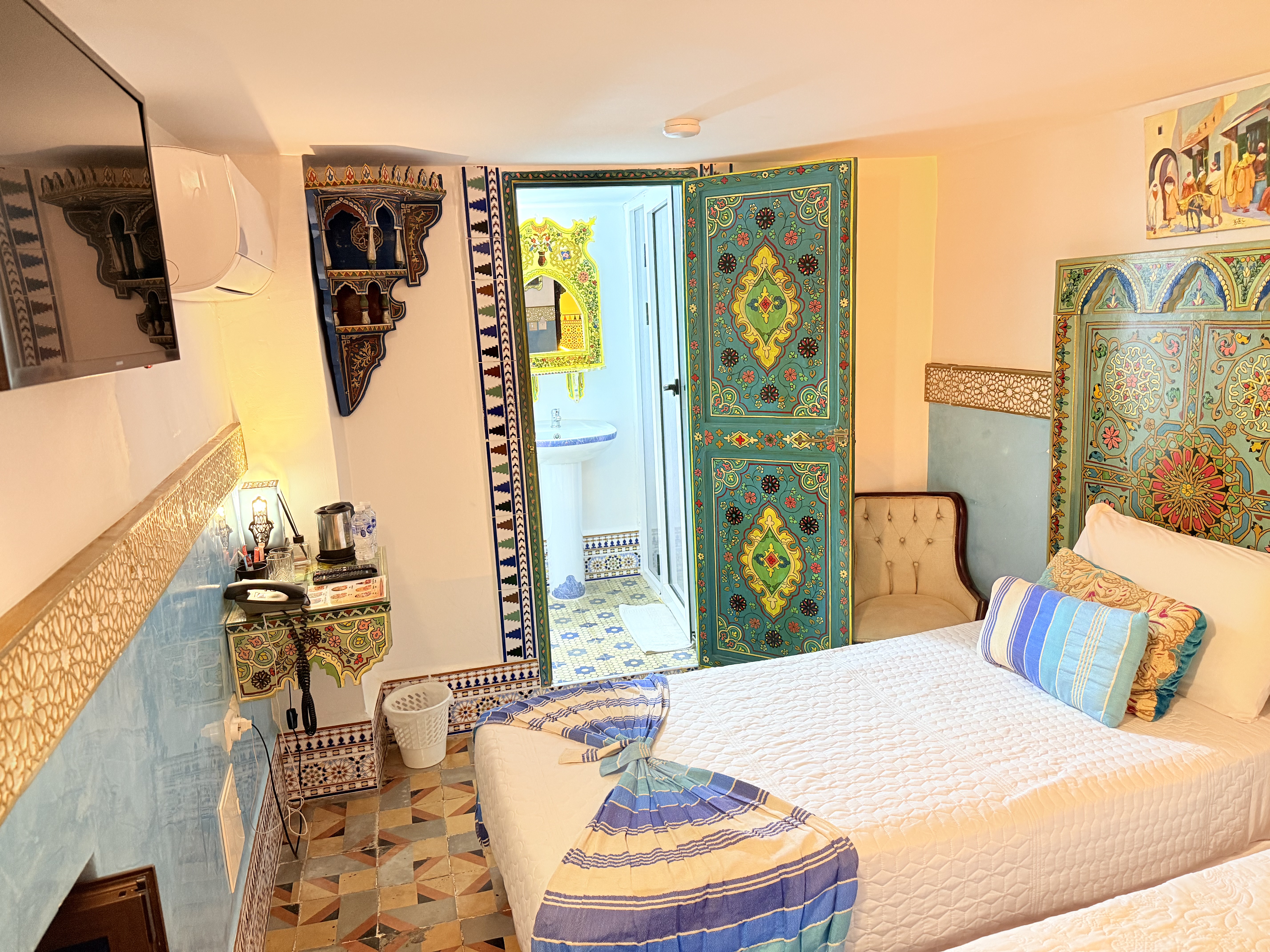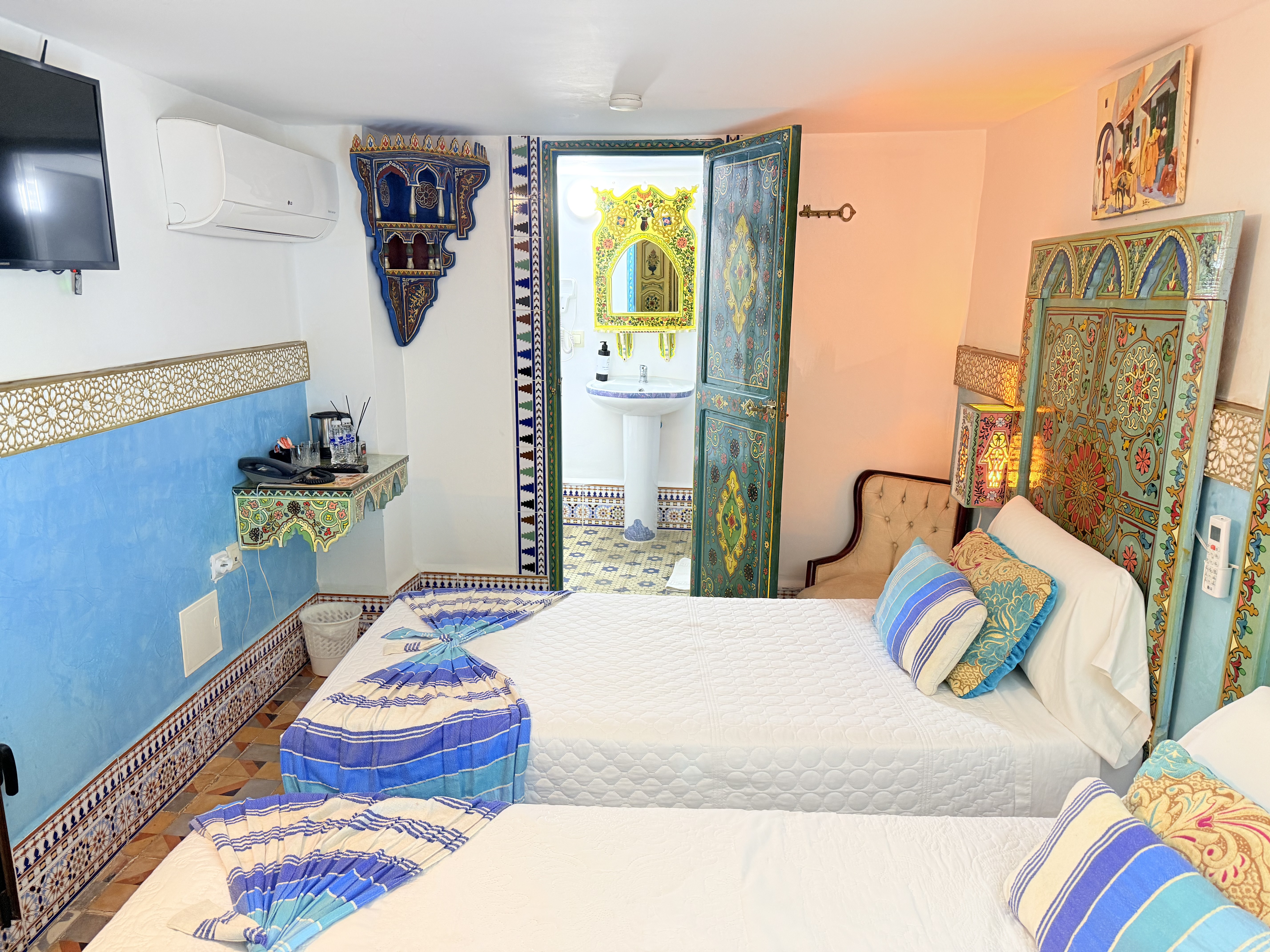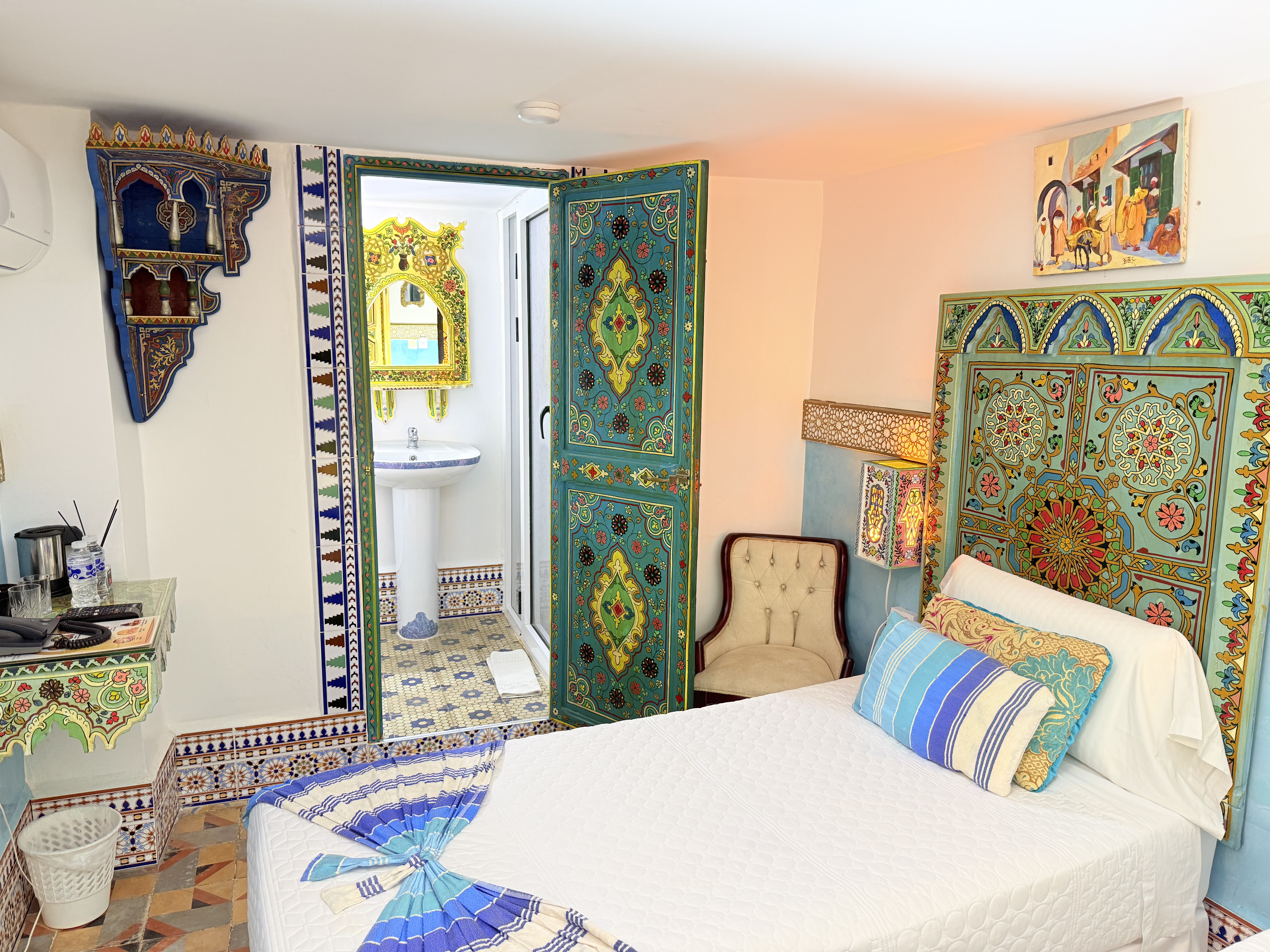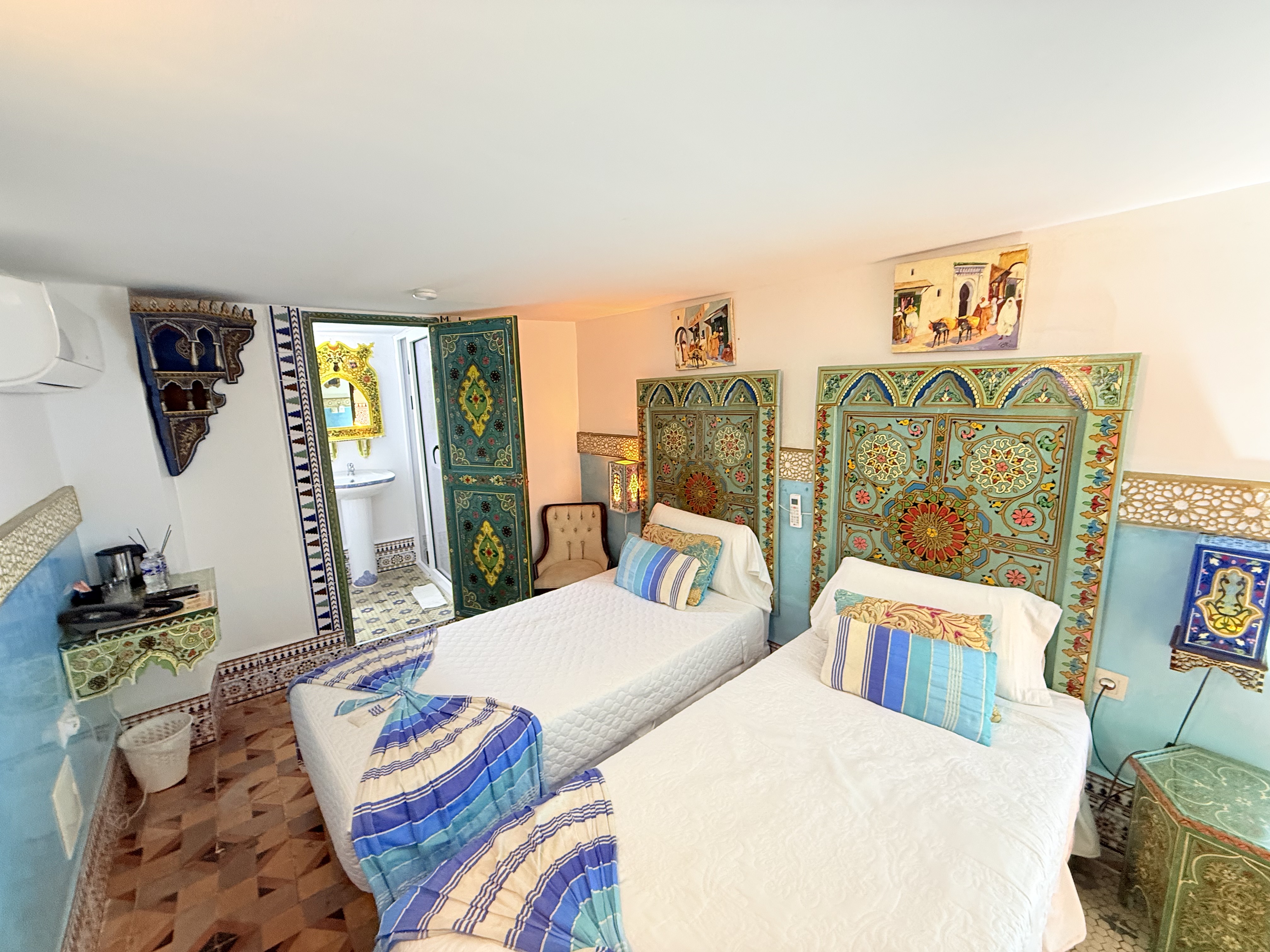 Un Encanto Oriental Sumérgete en la belleza y el encanto de Oriente en la habitación Morgiana en Riad Las Mil y Una Noches. Nombrada en honor al personaje legendario de Las Mil y Una Noches, esta habitación te ofrece una experiencia única en el corazón de Tetouan.
