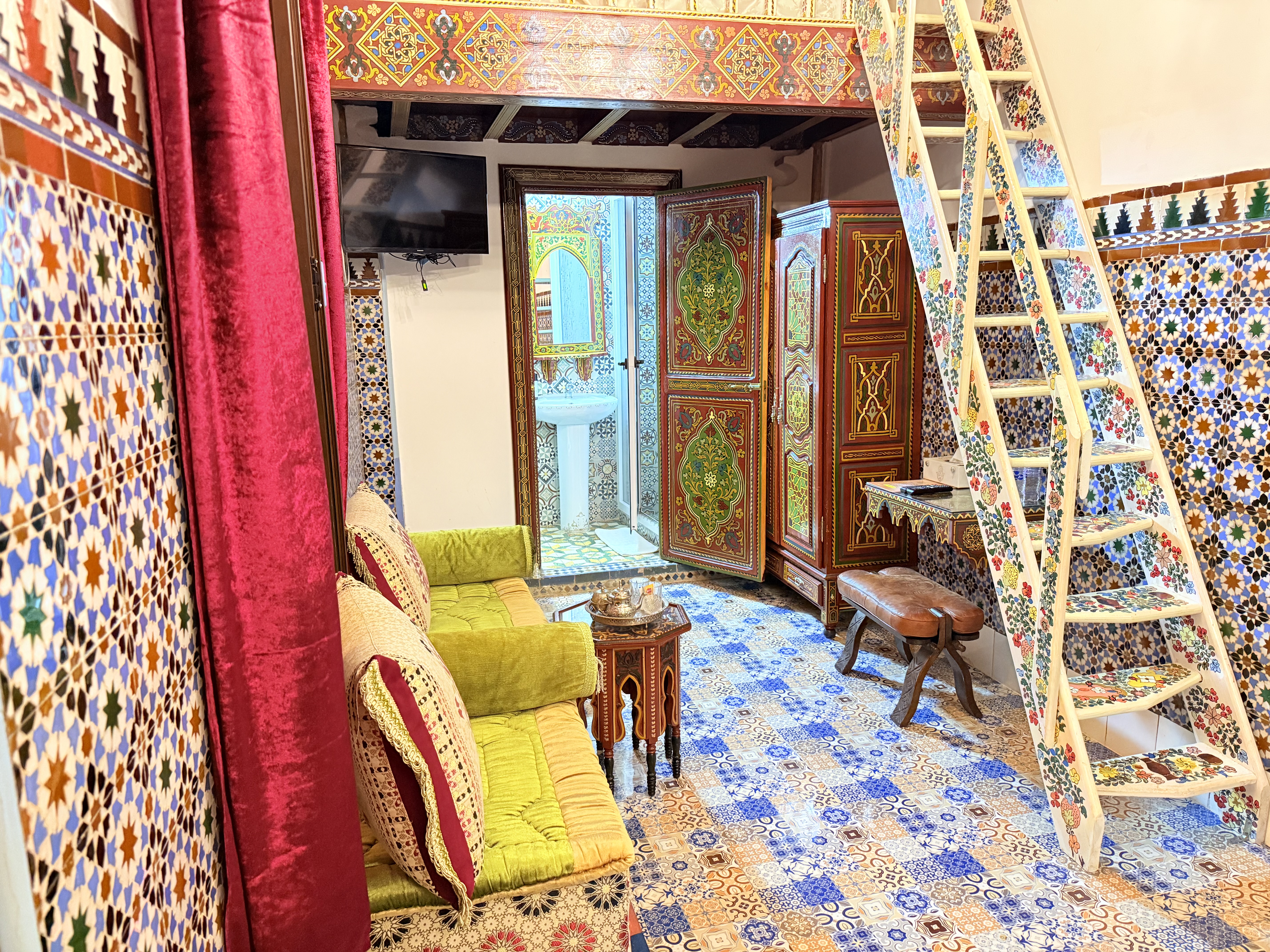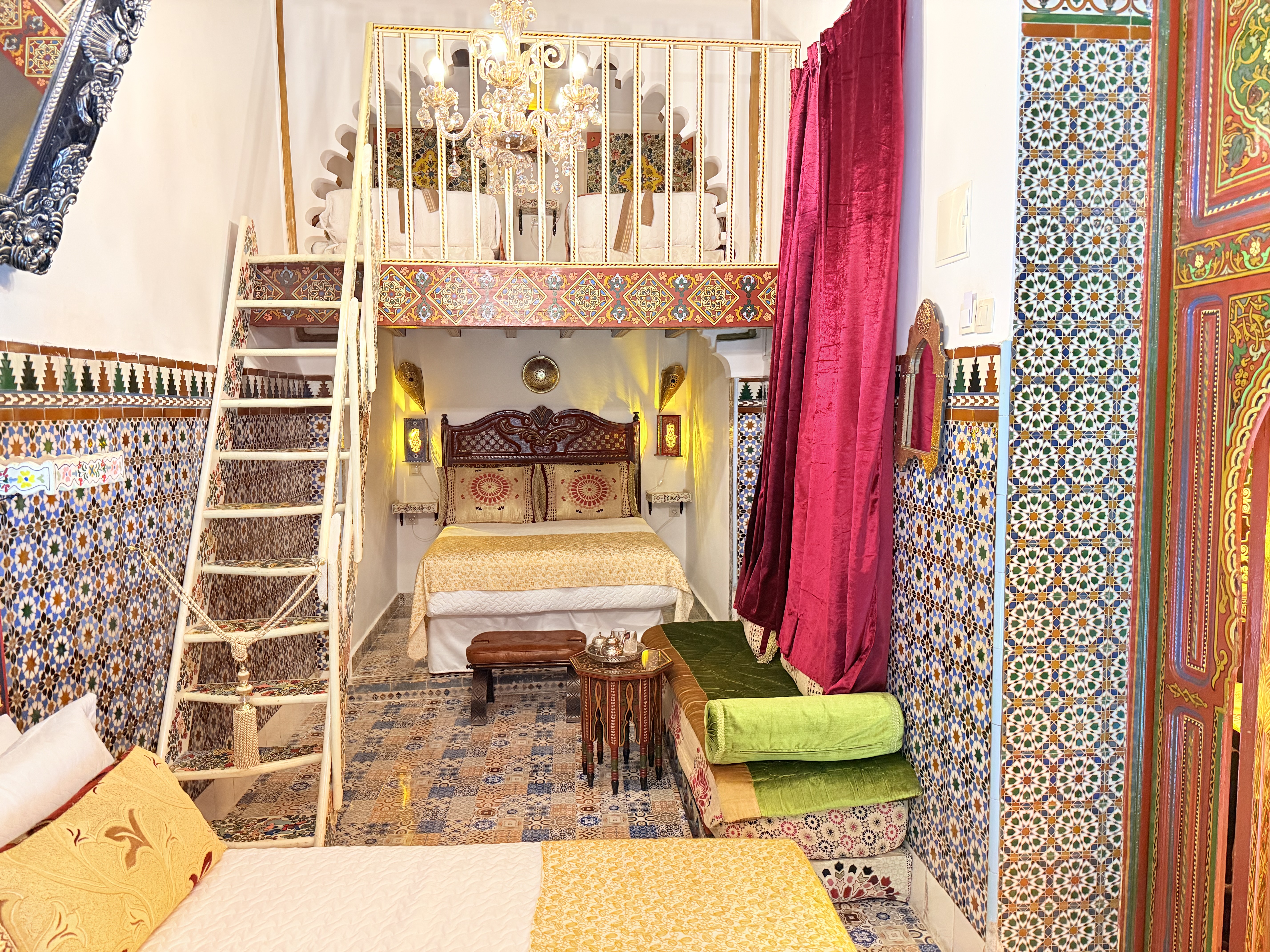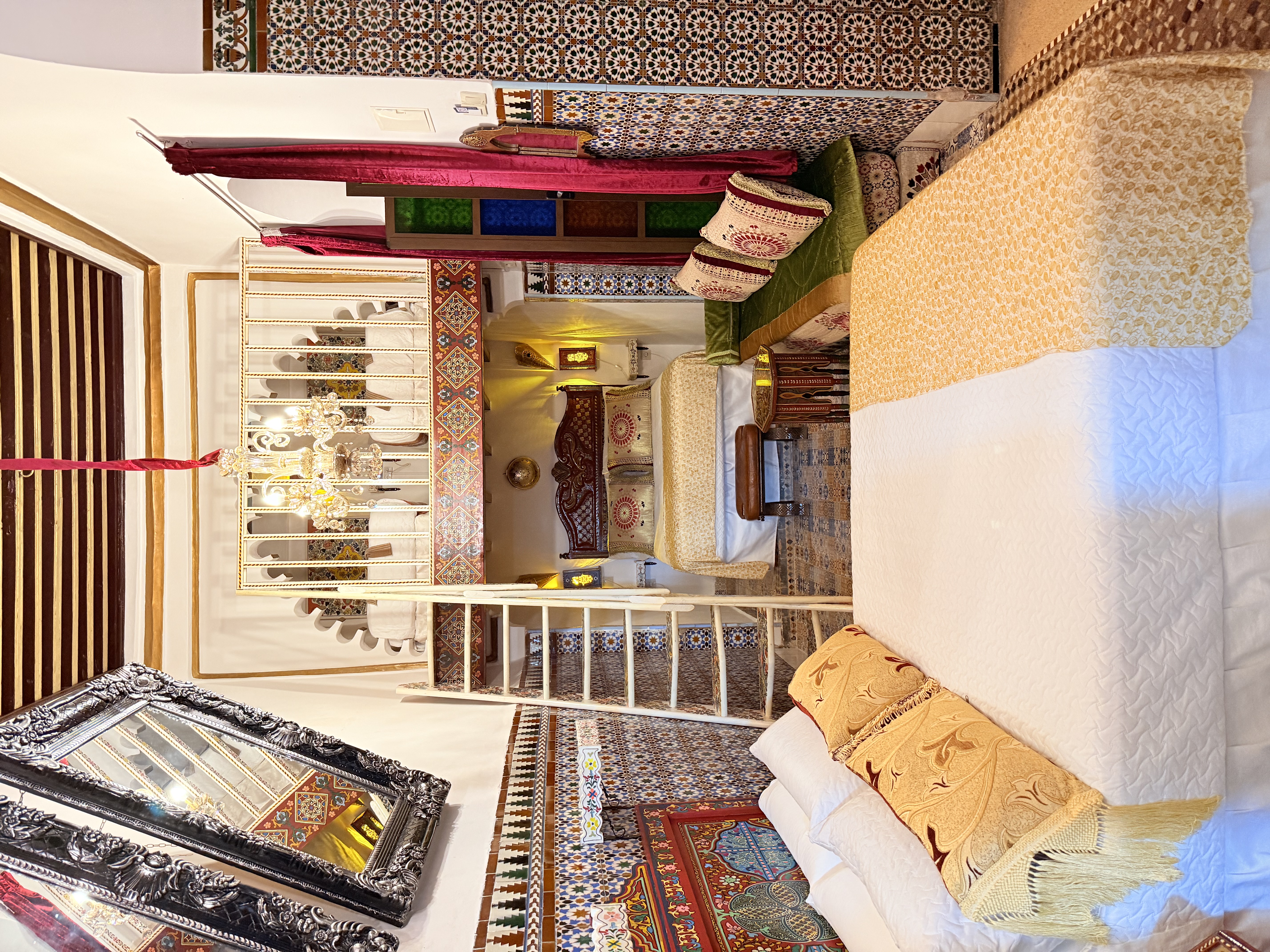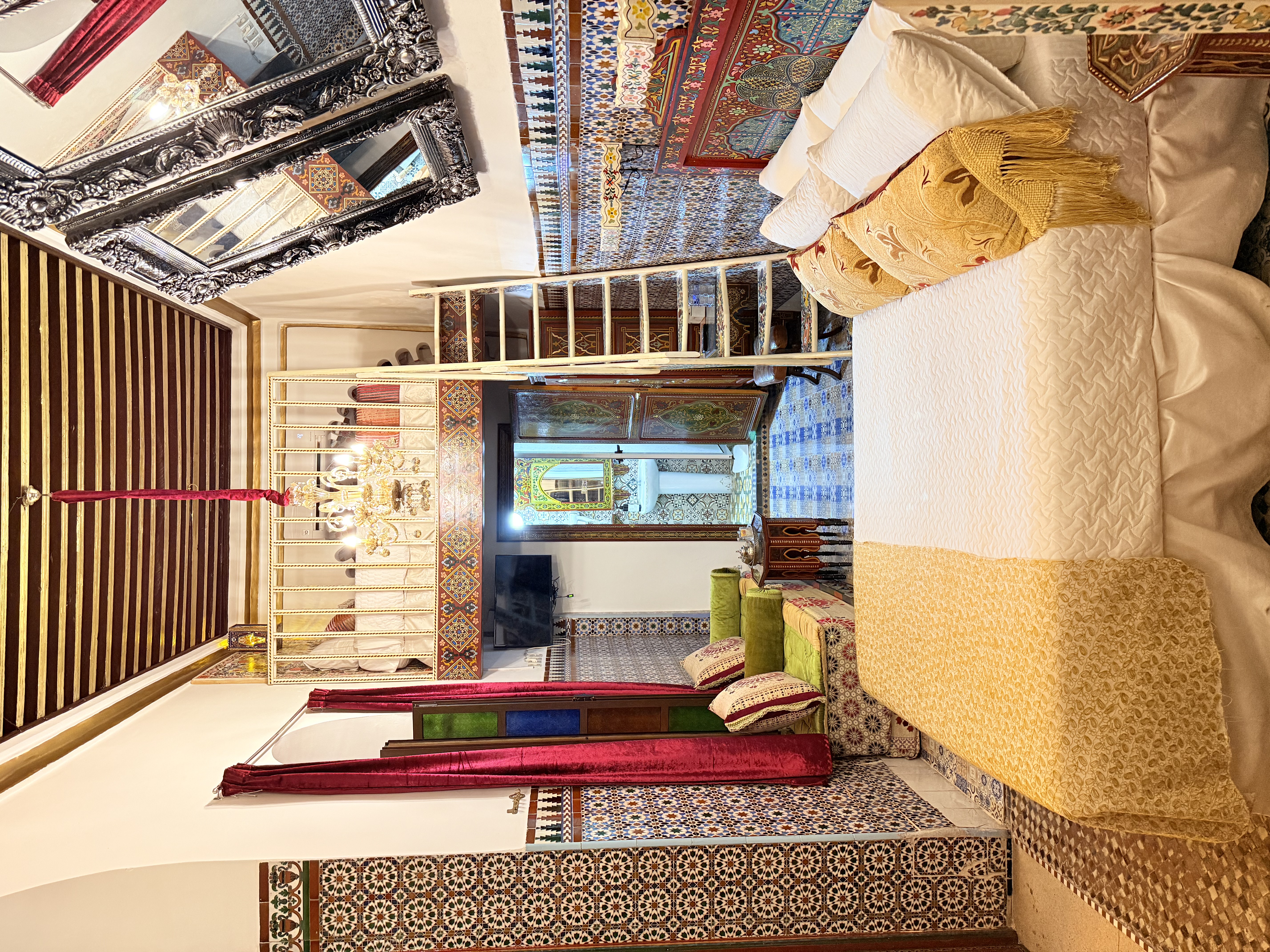 Donde los Cuentos se Hacen Realidad Adéntrate en un mundo de fantasía y encanto en la habitación Scheherezad en Riad Las Mil y Una Noches. Nombrada en honor a la legendaria narradora de Las Mil y Una Noches, esta habitación te ofrece una experiencia mágica en el corazón de Tetouan.