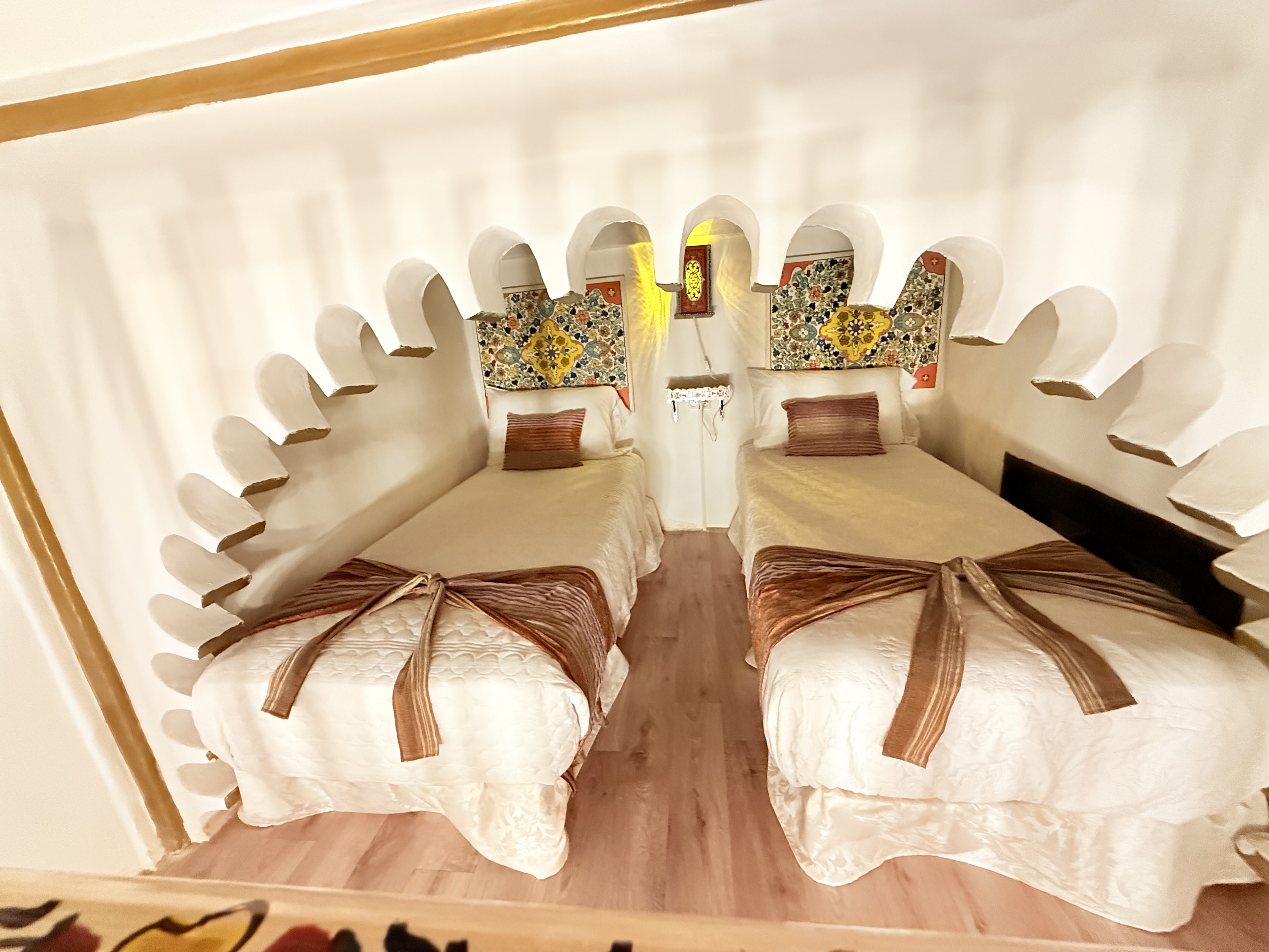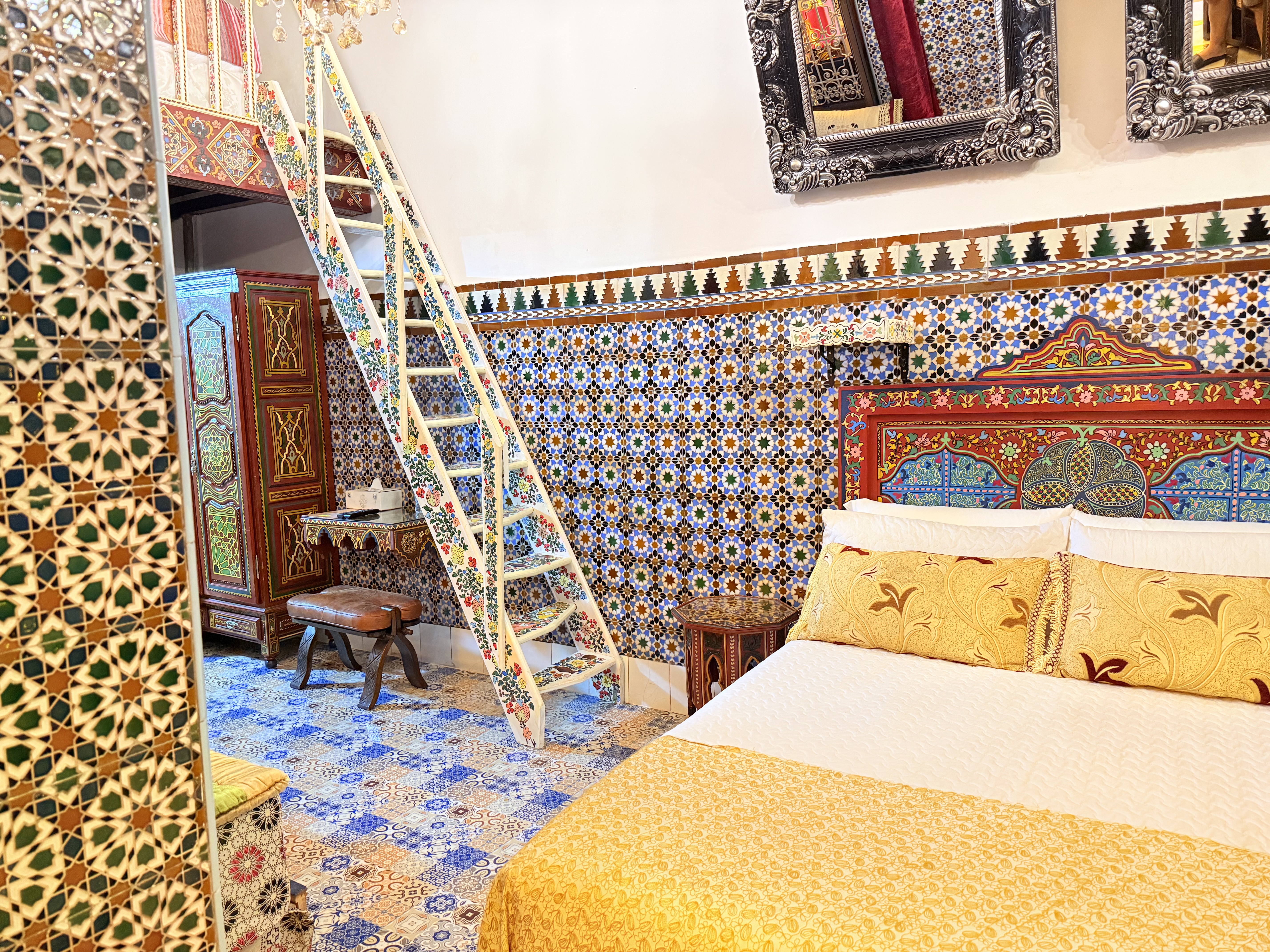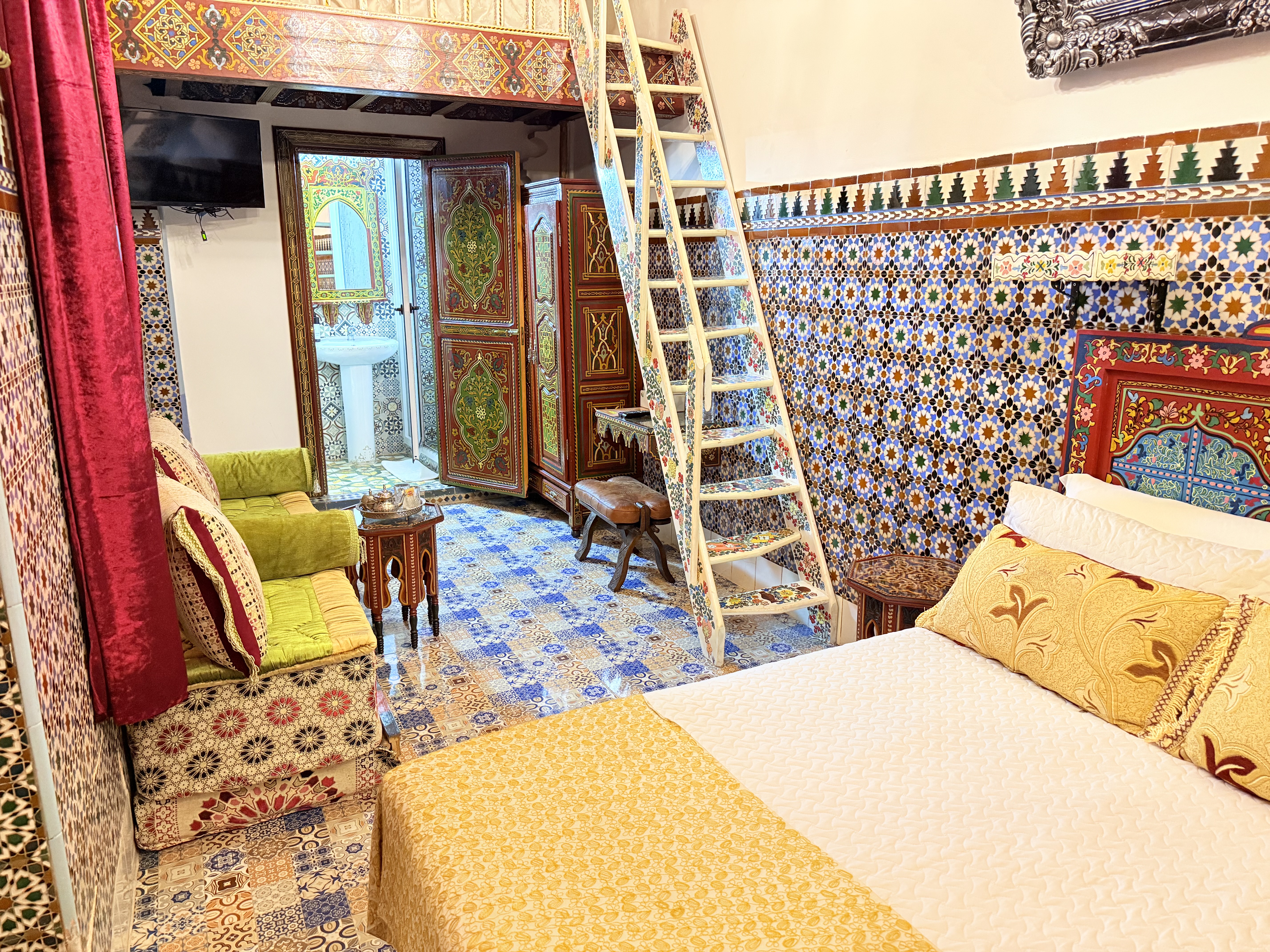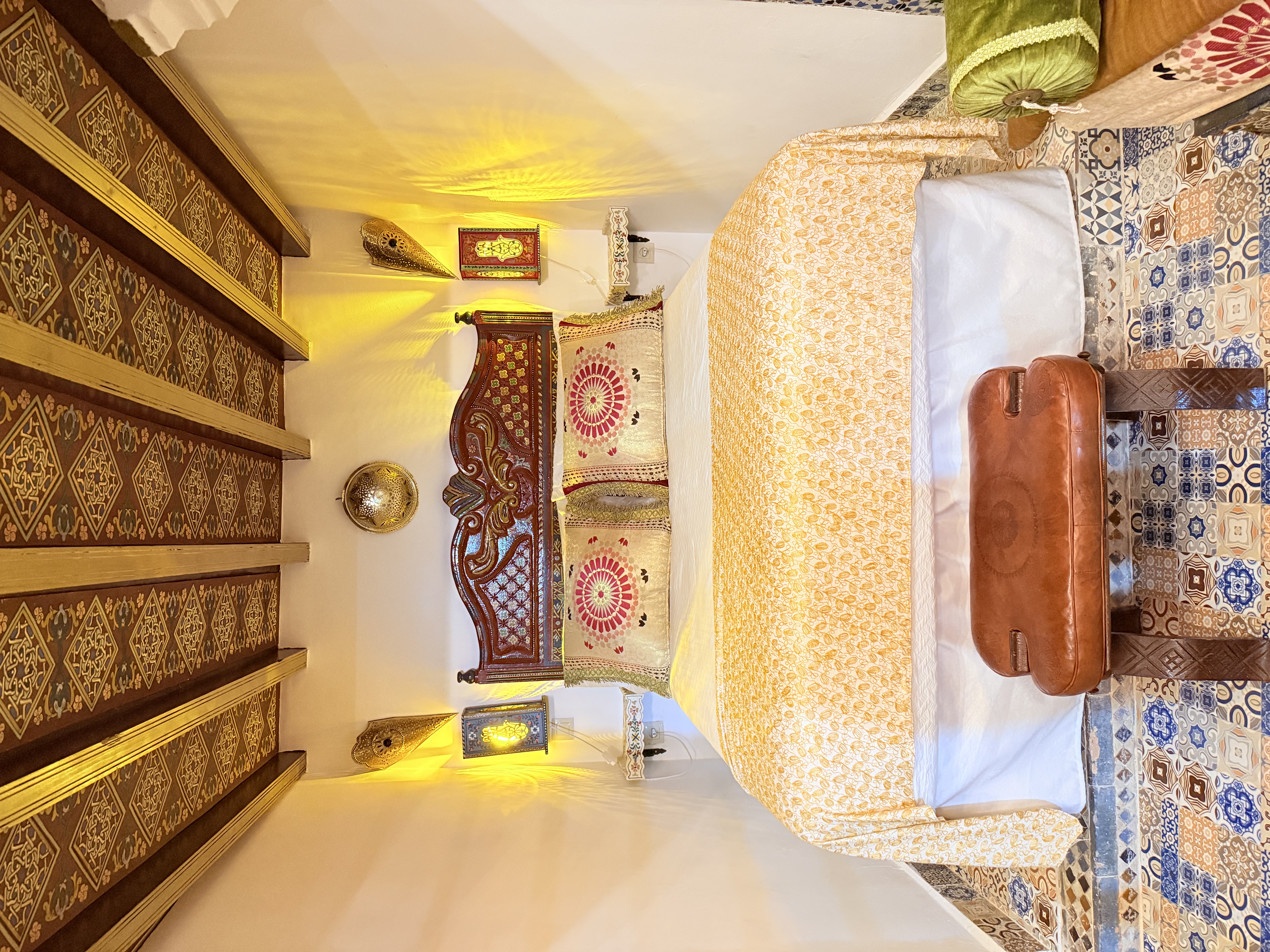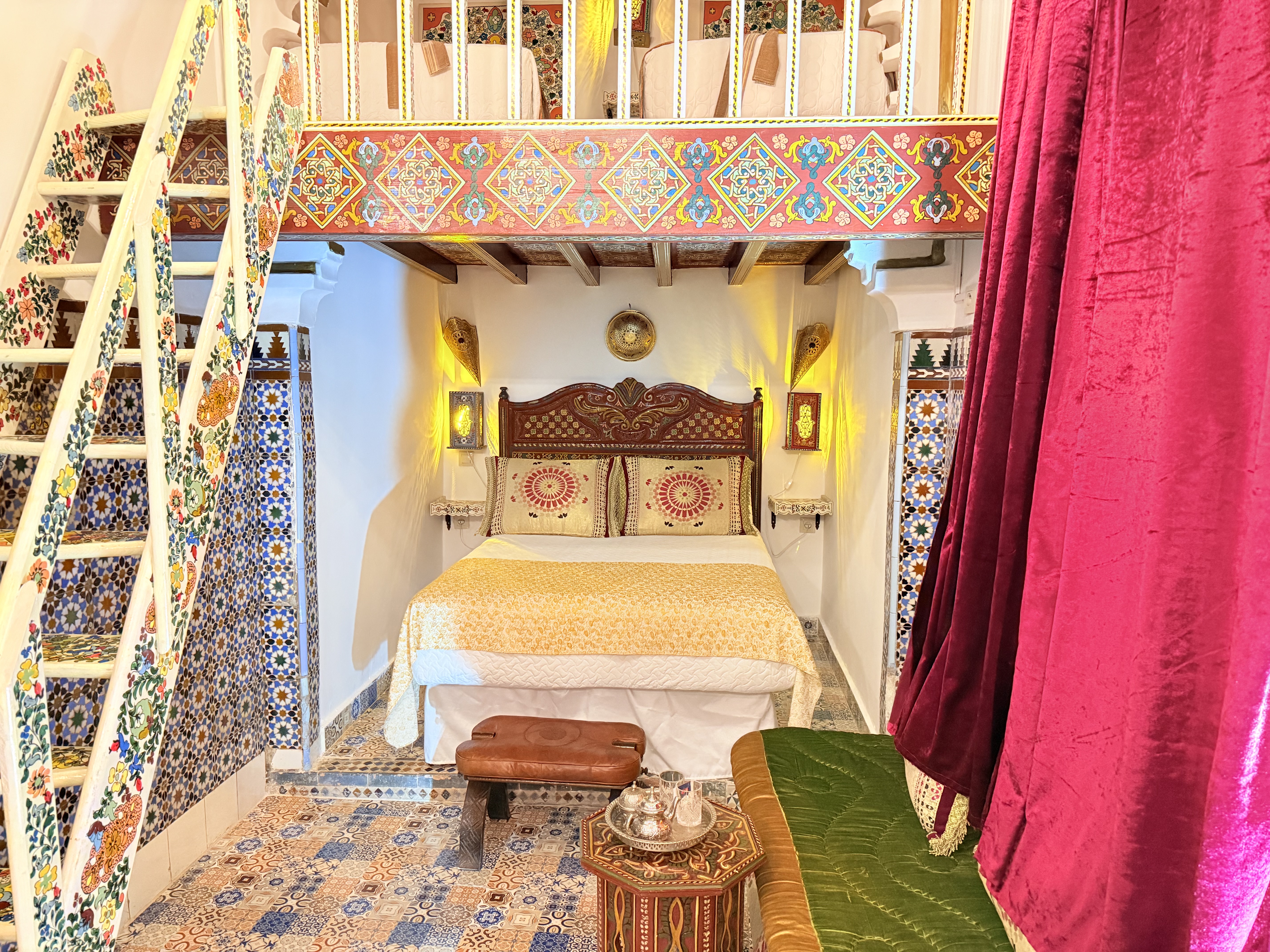 Donde los Cuentos se Hacen Realidad Adéntrate en un mundo de fantasía y encanto en la habitación Scheherezad en Riad Las Mil y Una Noches. Nombrada en honor a la legendaria narradora de Las Mil y Una Noches, esta habitación te ofrece una experiencia mágica en el corazón de Tetouan.