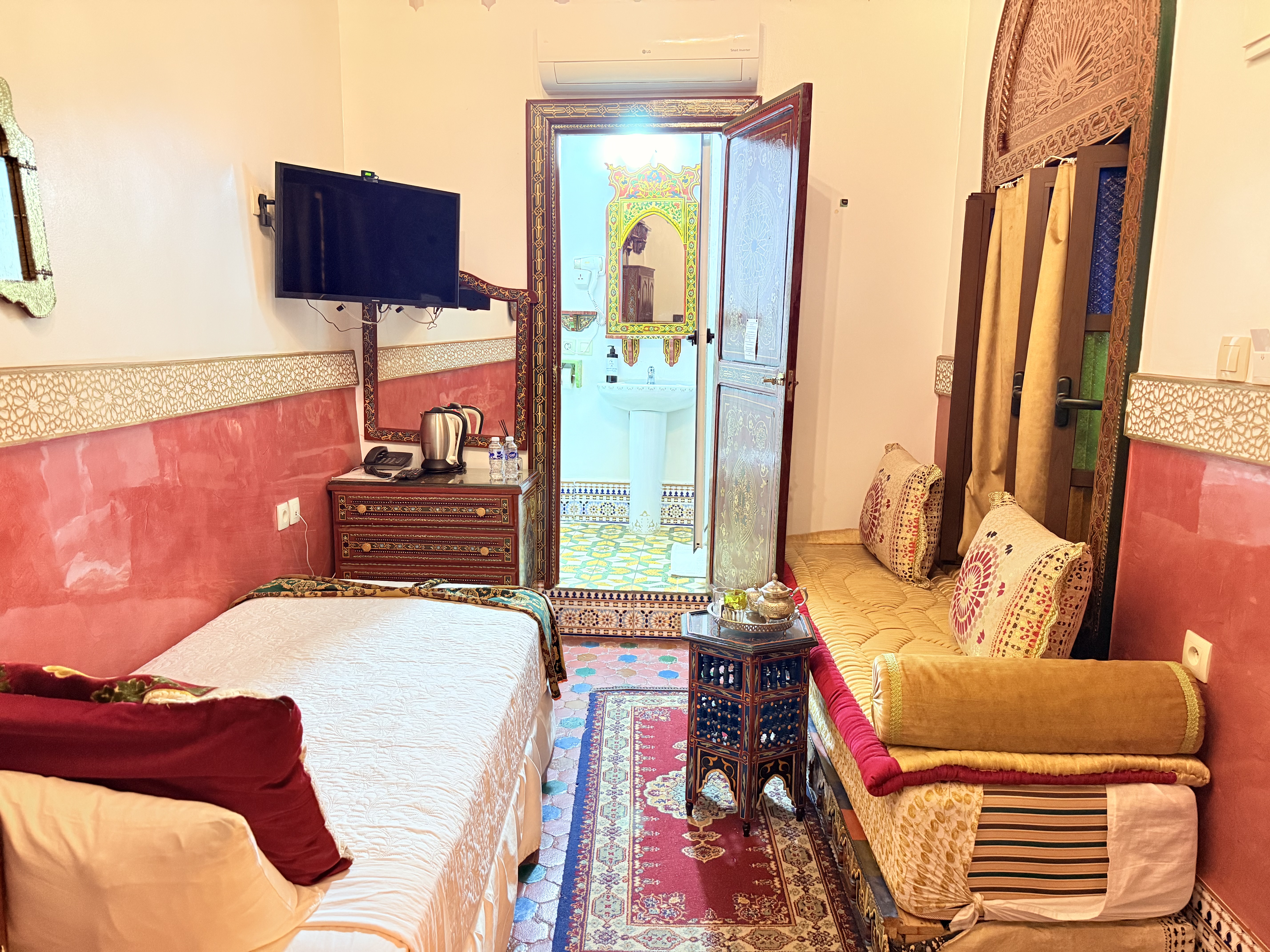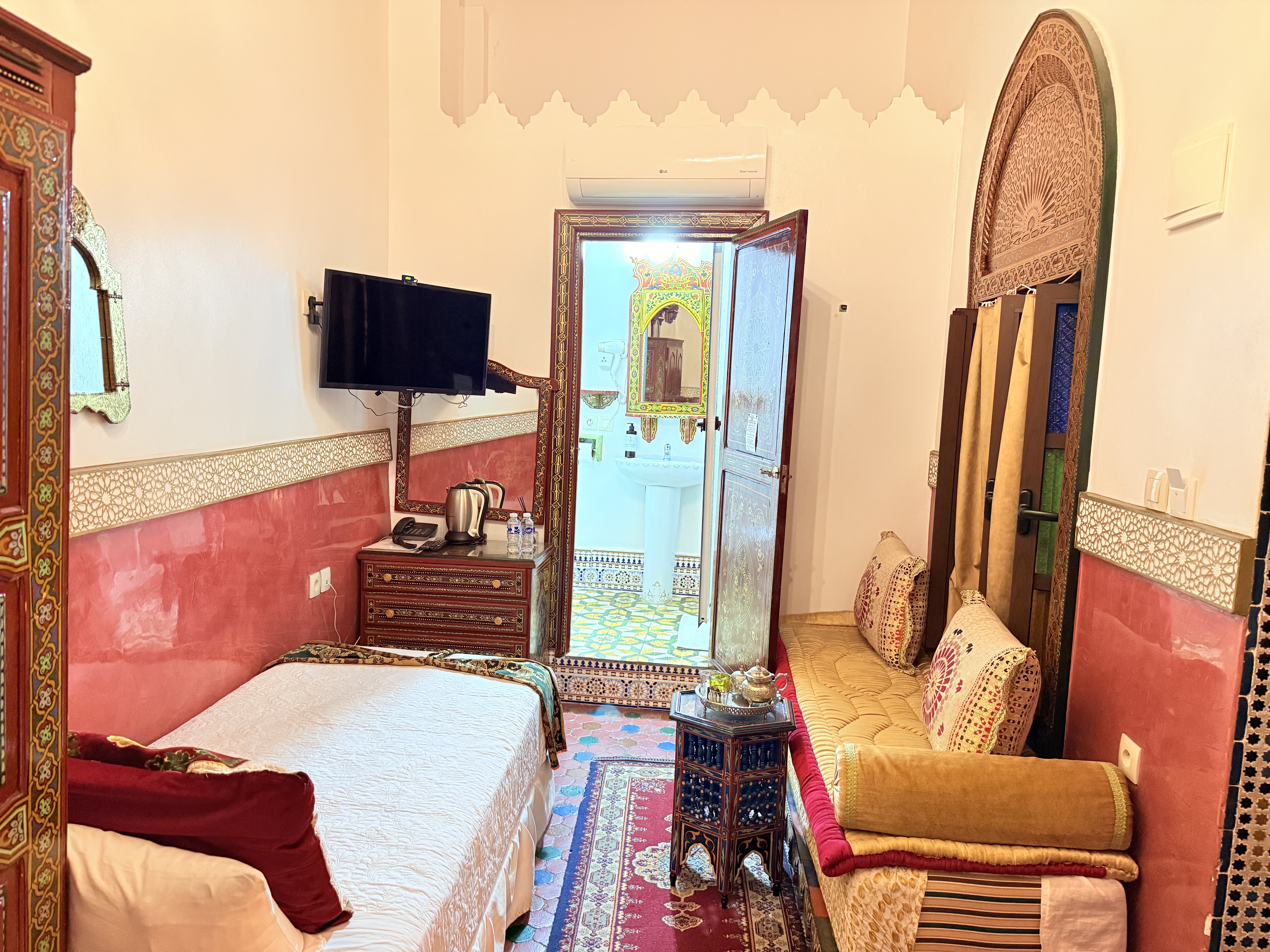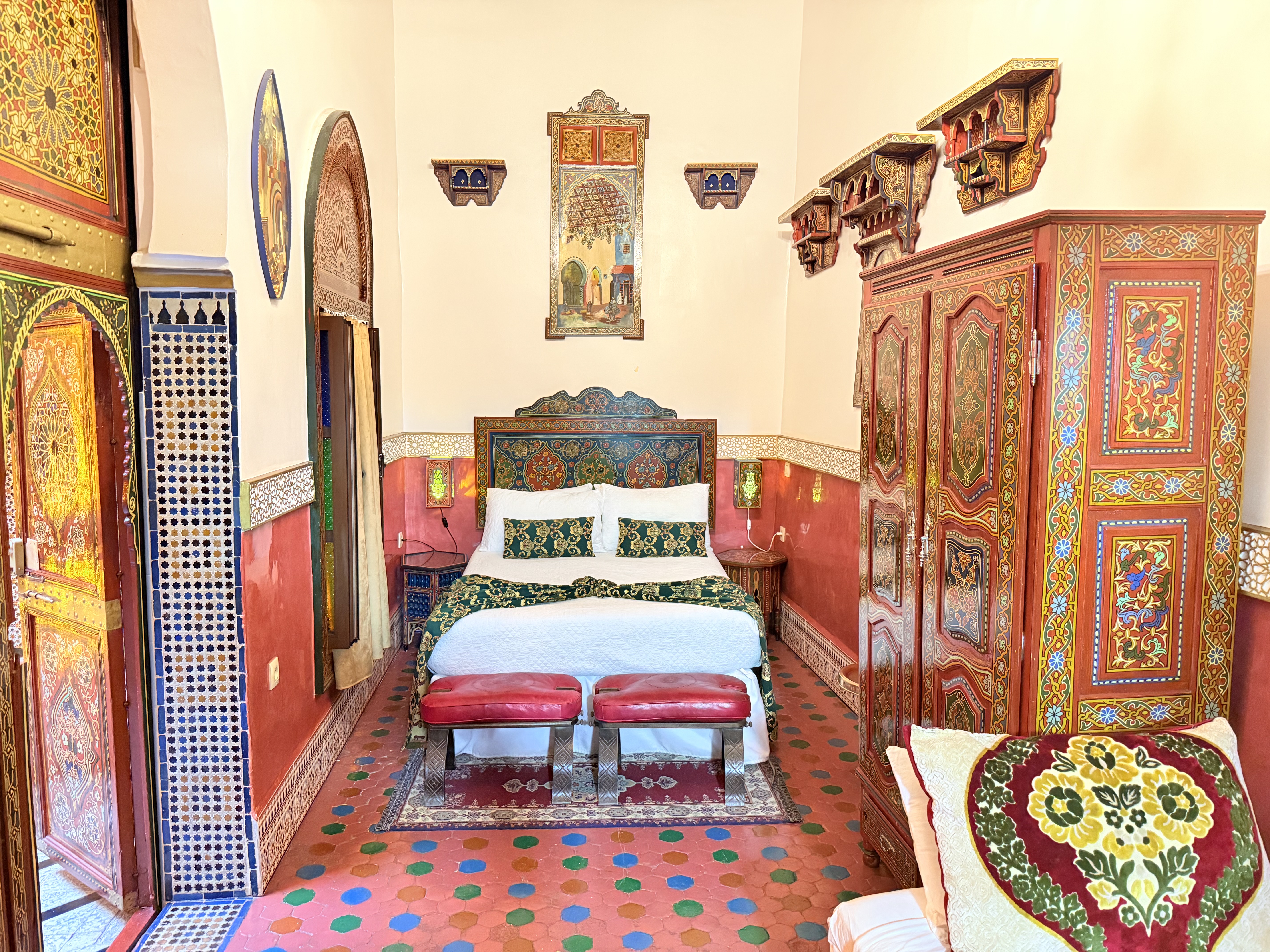 Elegancia Persa en el Corazón de Tetouan Descubre la opulencia y la elegancia de la habitación Shahriar en Riad Las Mil y Una Noches. Nombrada en honor al legendario rey persa, esta habitación te ofrece un oasis de lujo y comodidad en medio de la vibrante Tetouan.