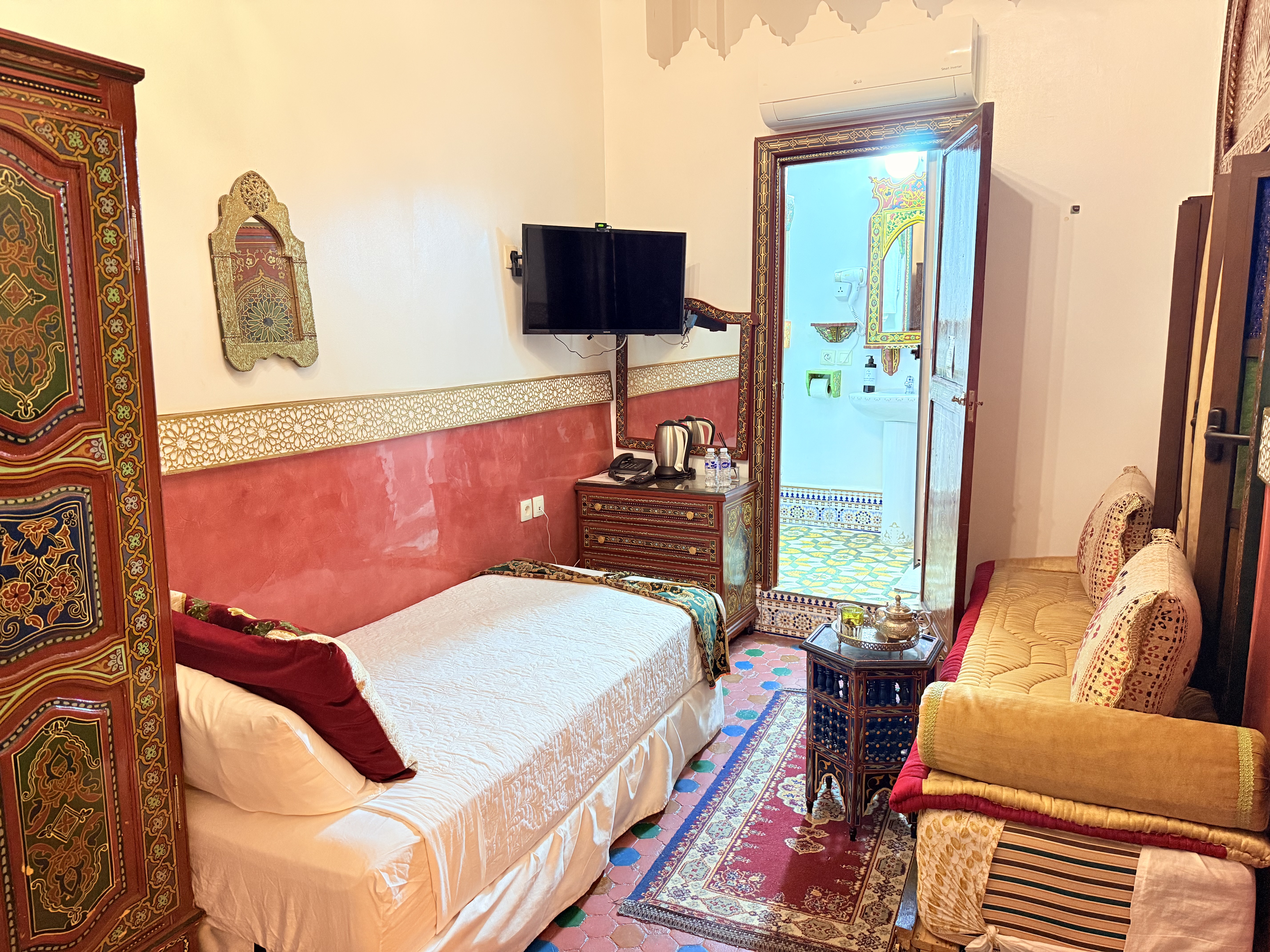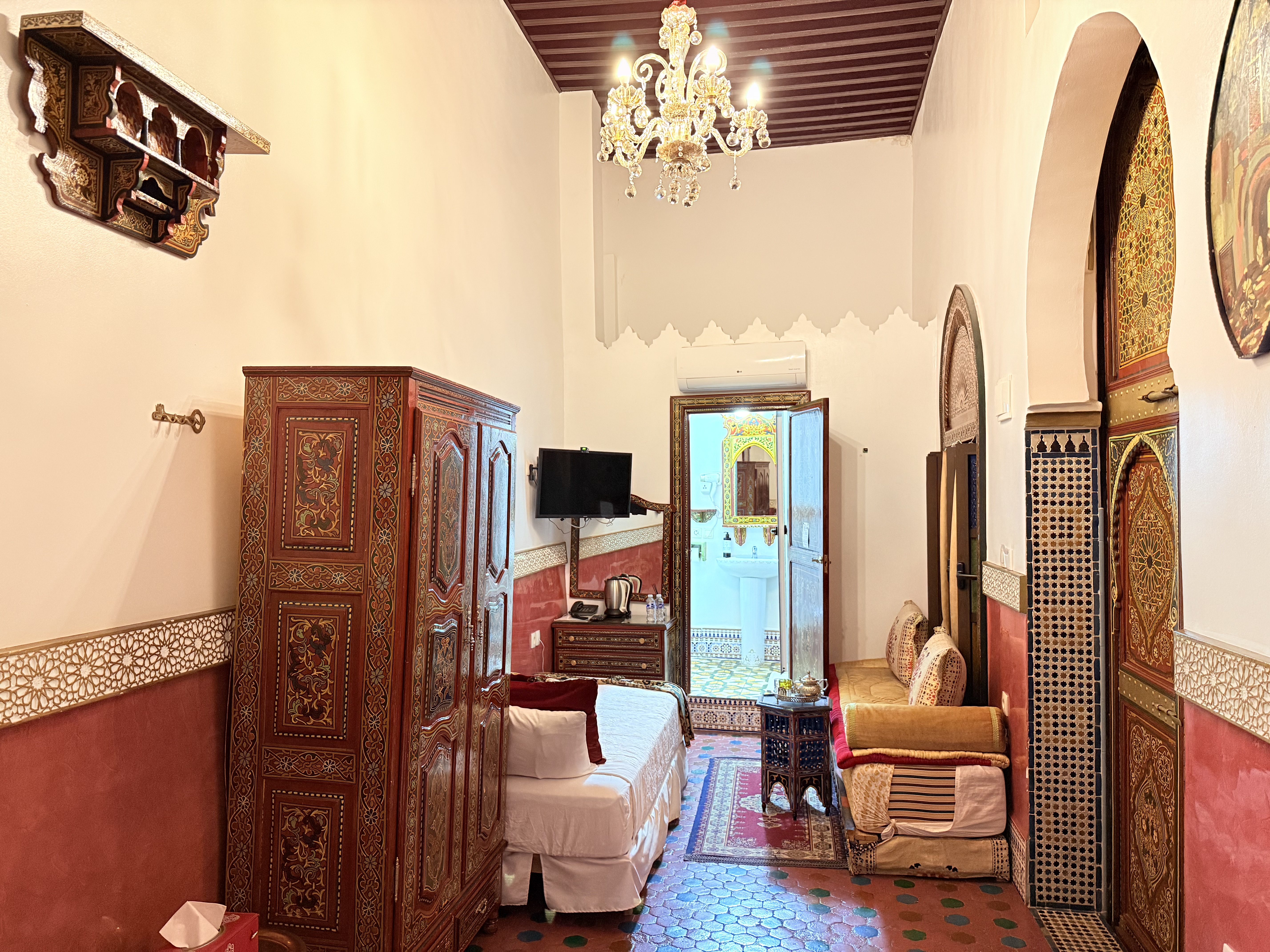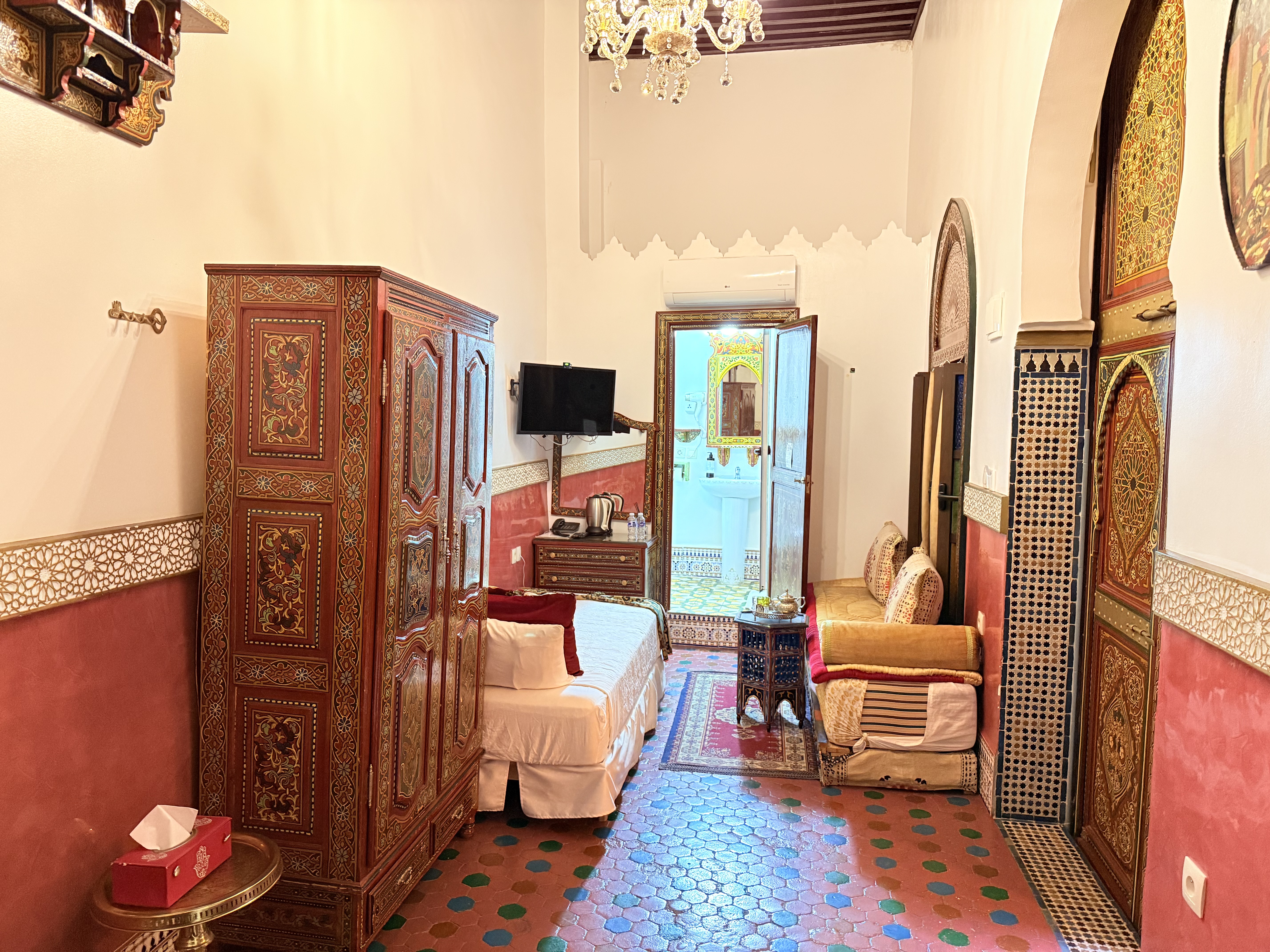 Elegancia Persa en el Corazón de Tetouan Descubre la opulencia y la elegancia de la habitación Shahriar en Riad Las Mil y Una Noches. Nombrada en honor al legendario rey persa, esta habitación te ofrece un oasis de lujo y comodidad en medio de la vibrante Tetouan.