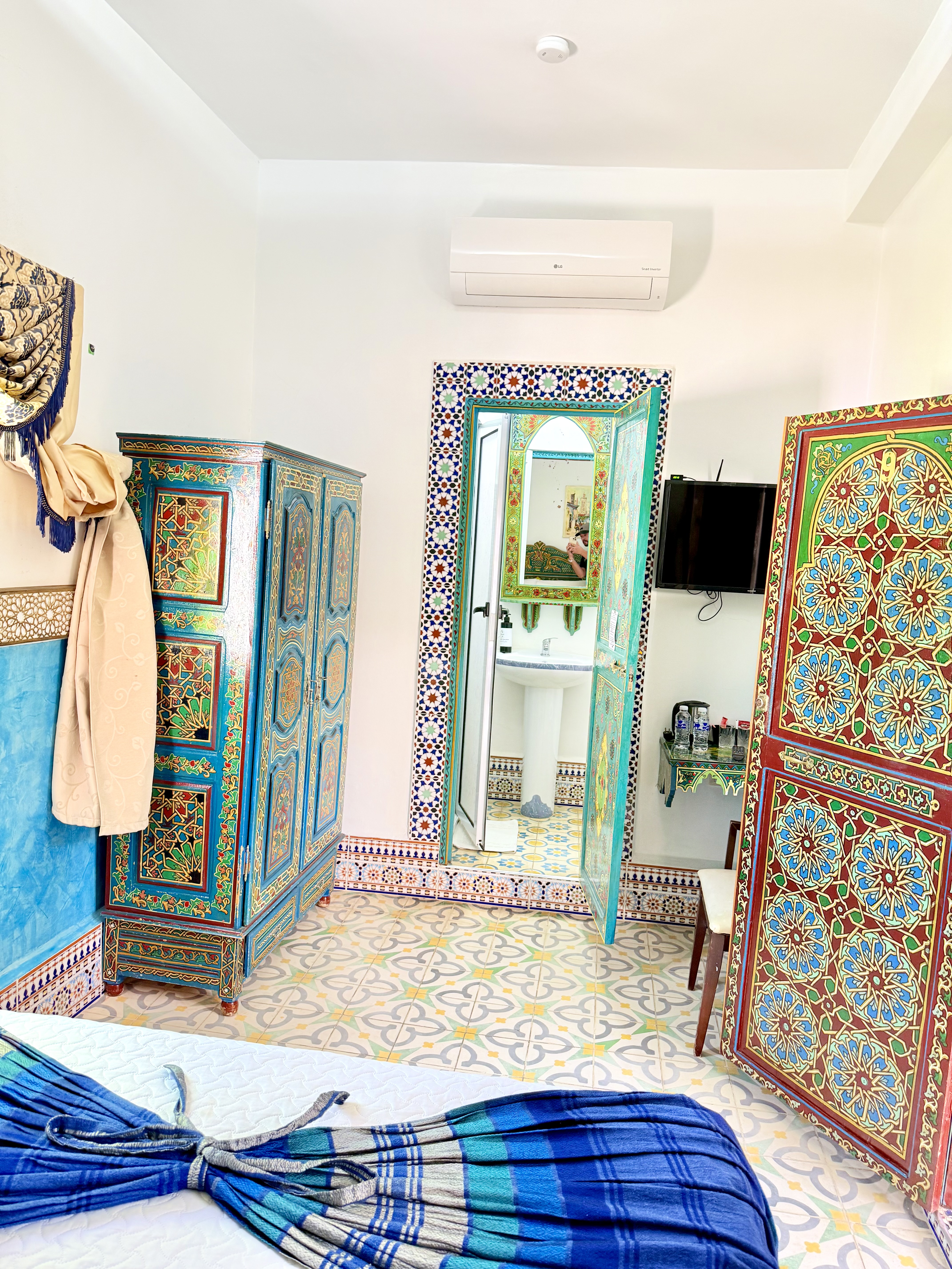 Un Escape Junto al Mar Adéntrate en el mundo encantador de Simbad El Marino en Riad Las Mil y Una Noches. Nombrada en honor al legendario marinero, esta habitación ofrece una cautivadora combinación de encanto marroquí e inspiración marítima, brindando un escape delicioso en el corazón de tetouan.