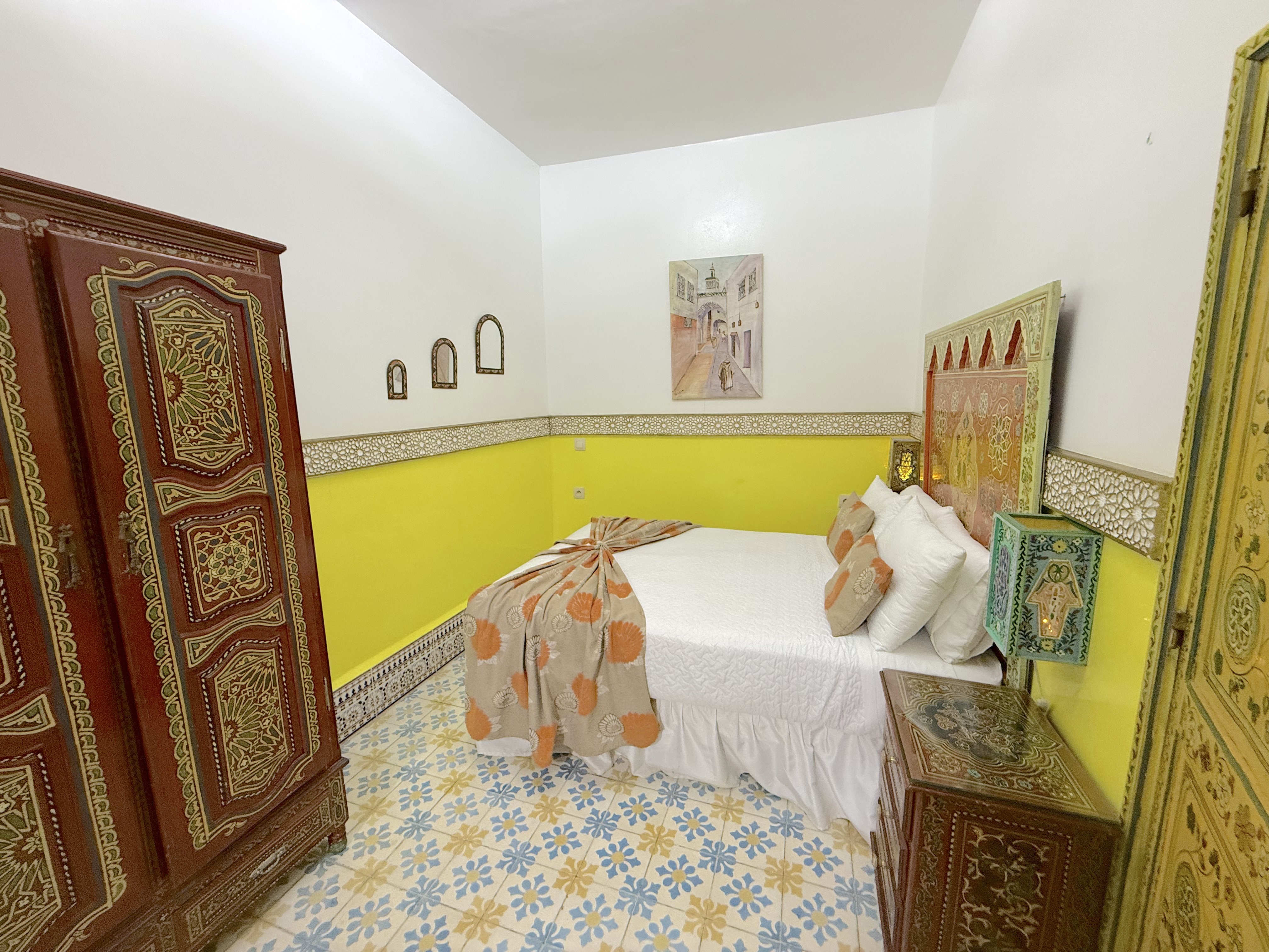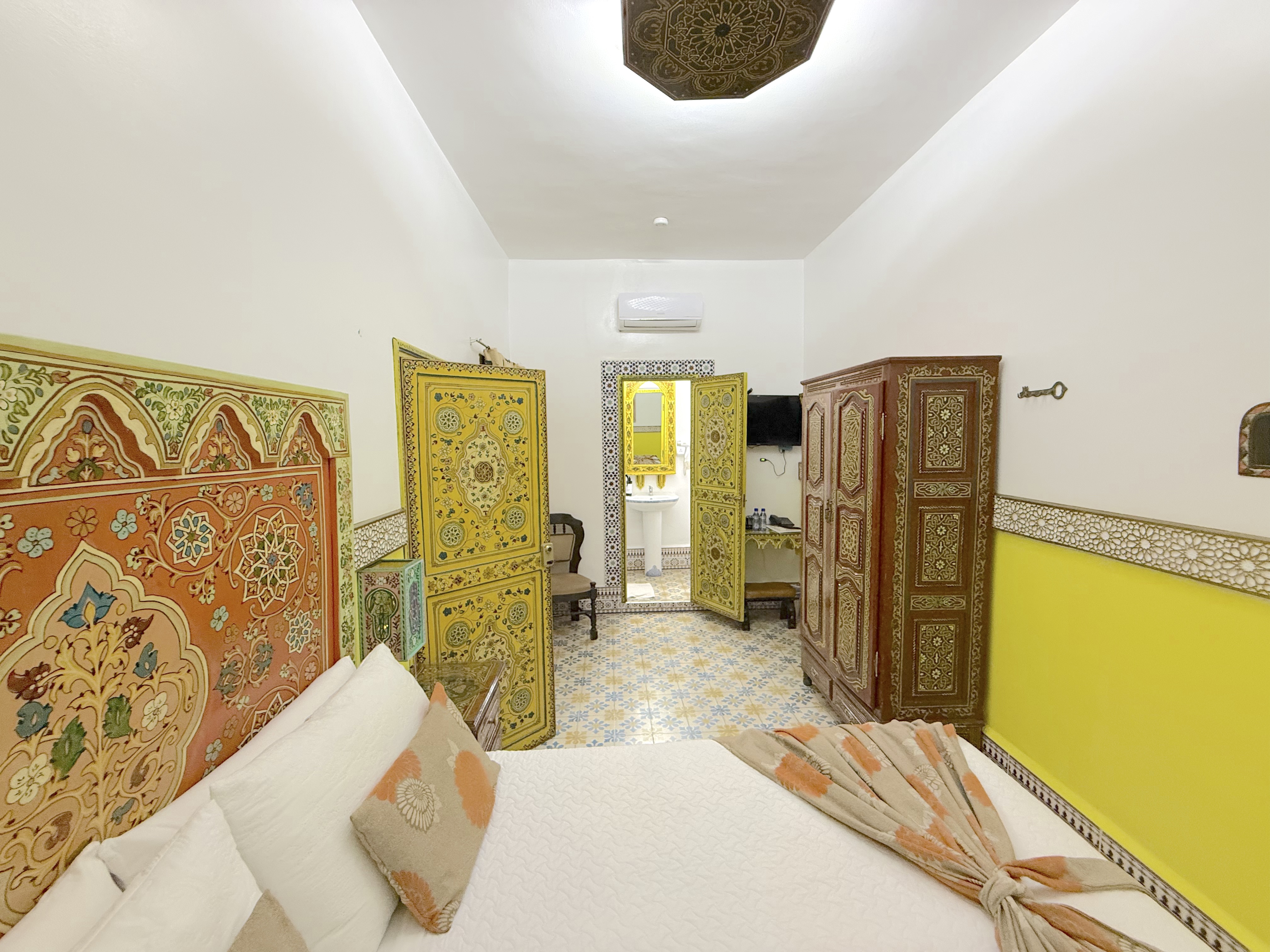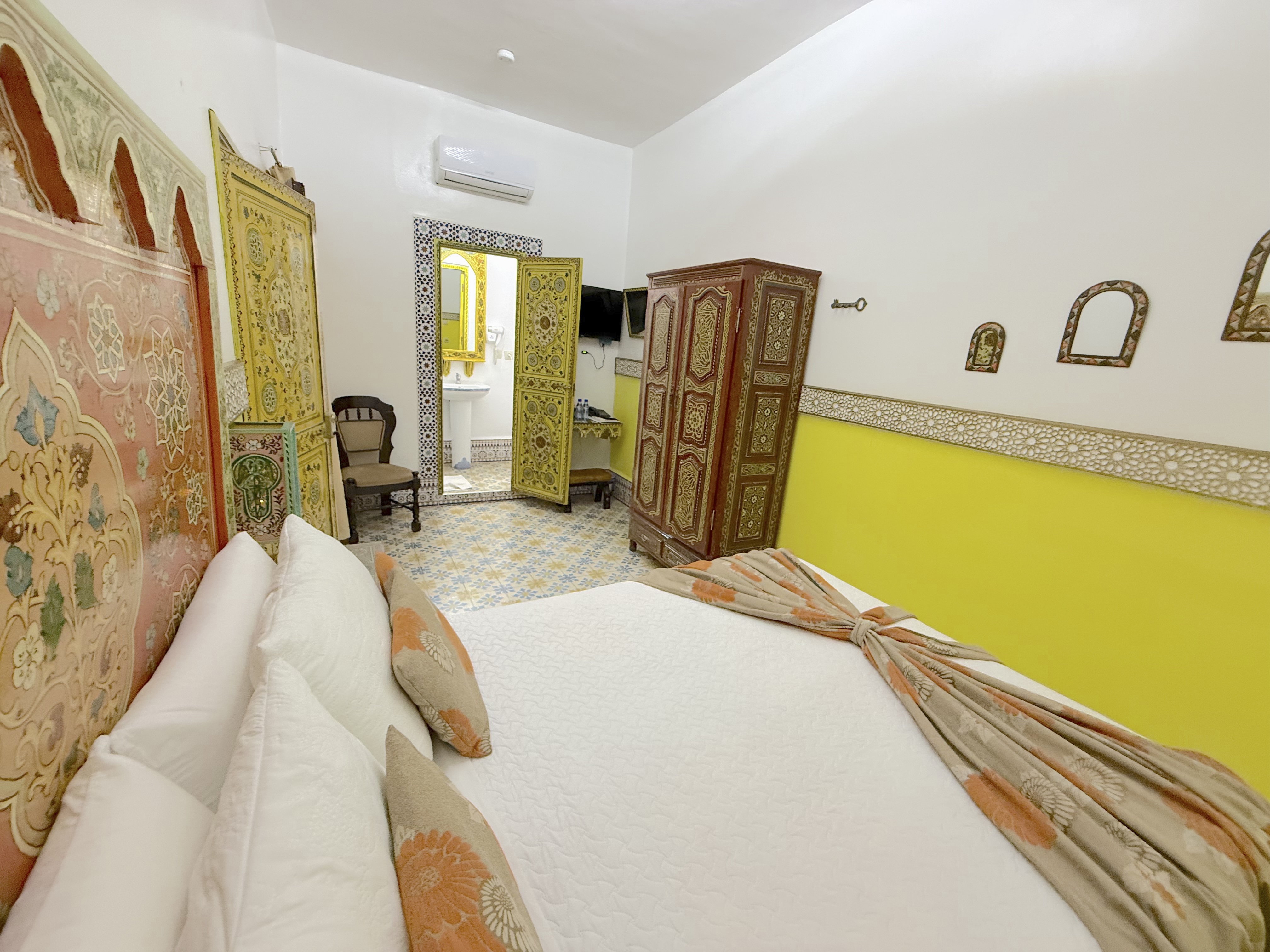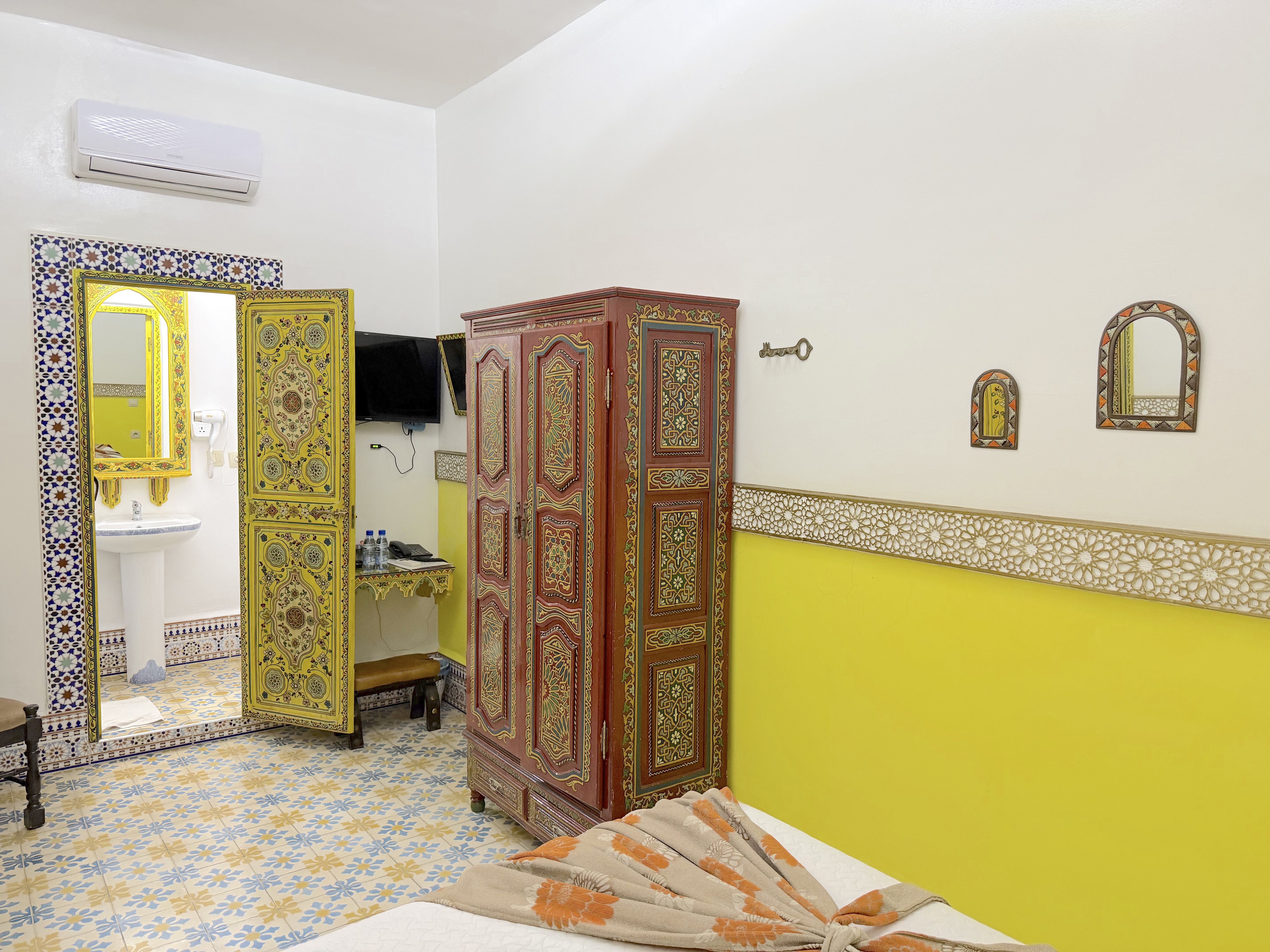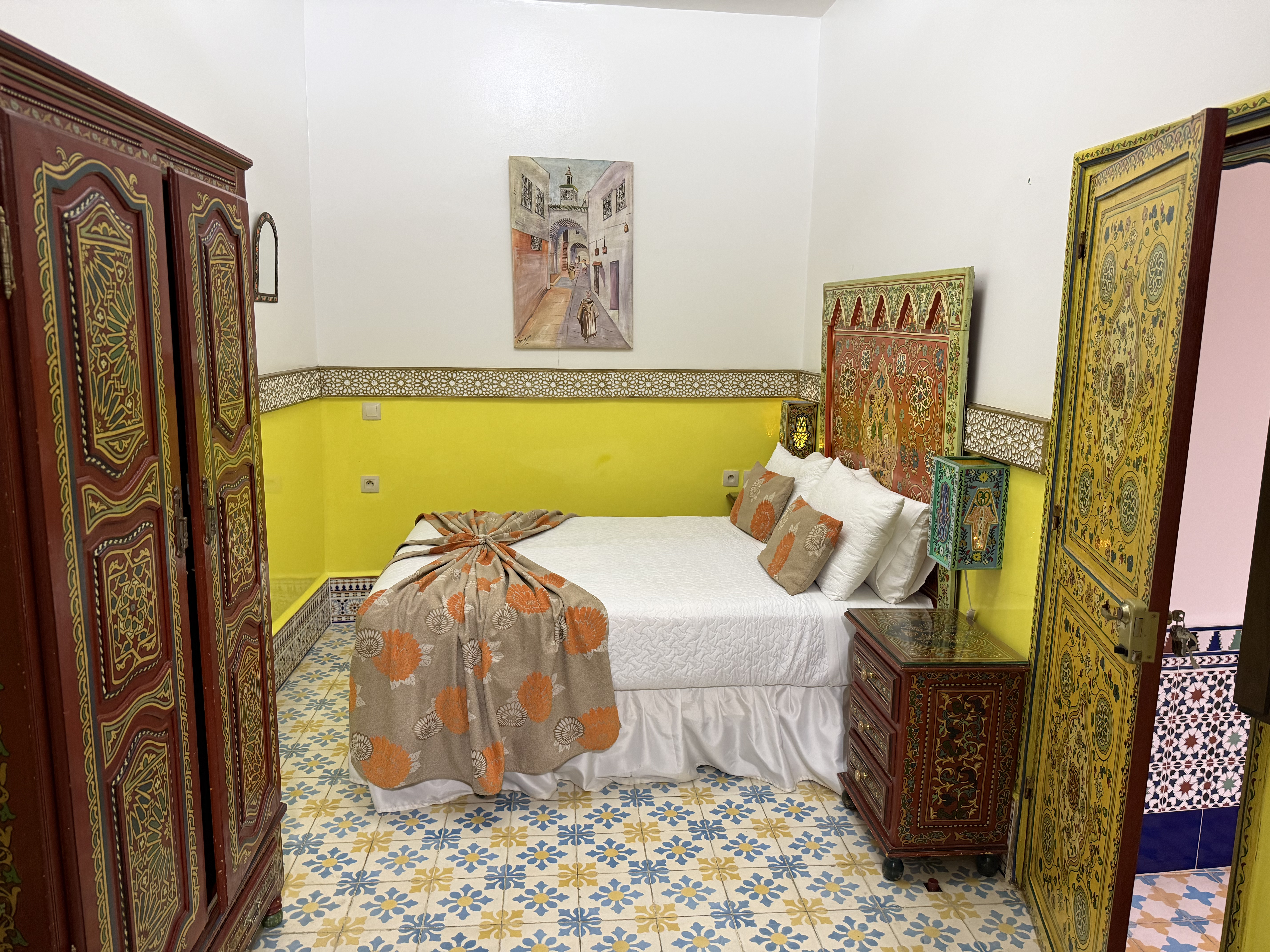 Un Retiro Tranquilo Sumérgete en el lujo y la tranquilidad con nuestra habitación Zumurrud en Riad Las Mil y Una Noches. Nombrada así por la palabra árabe "esmeralda", esta habitación irradia elegancia y serenidad, ofreciendo un retiro pacífico en el corazón de tetouan.